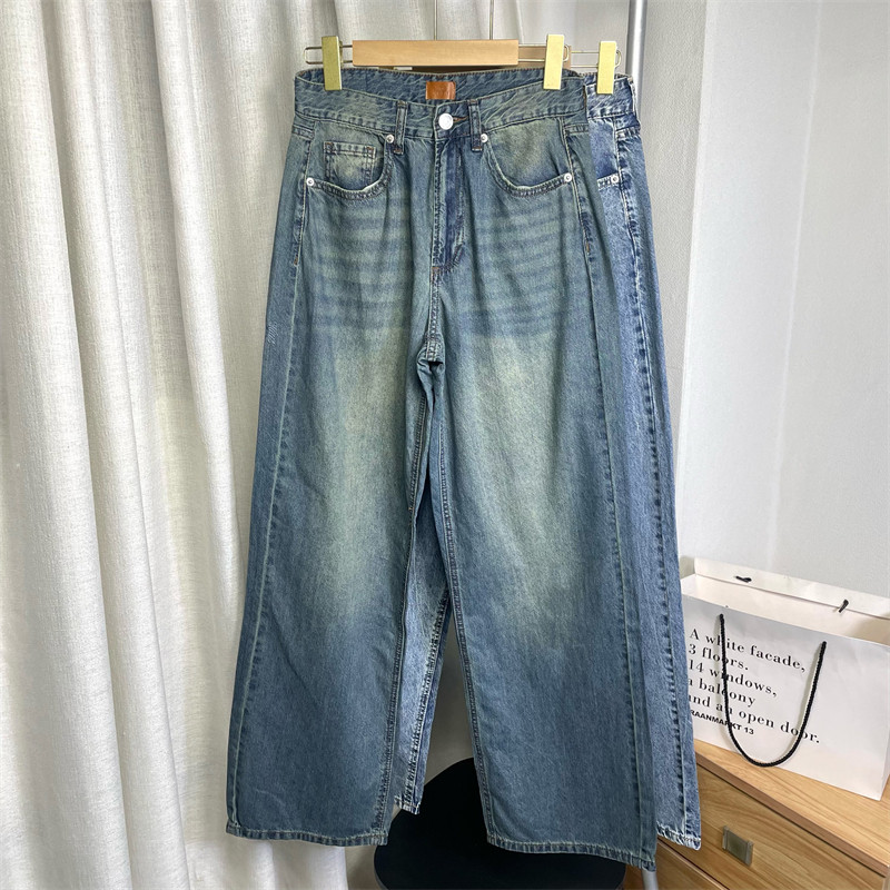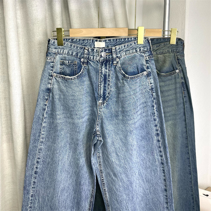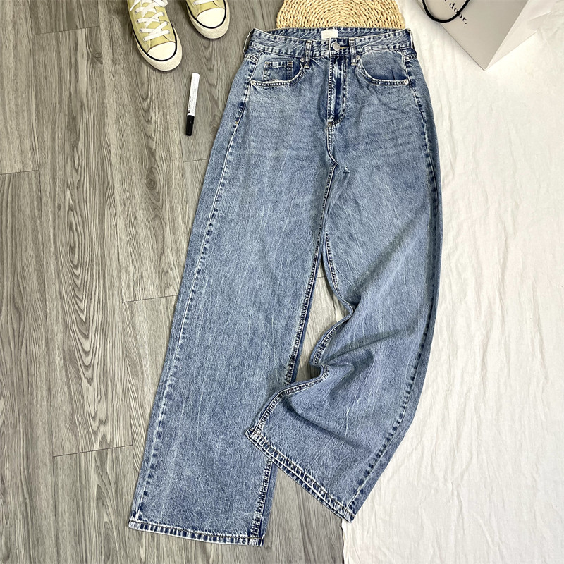 薄款~春夏怀旧感!复古水洗做旧高腰宽松直筒牛仔长裤女