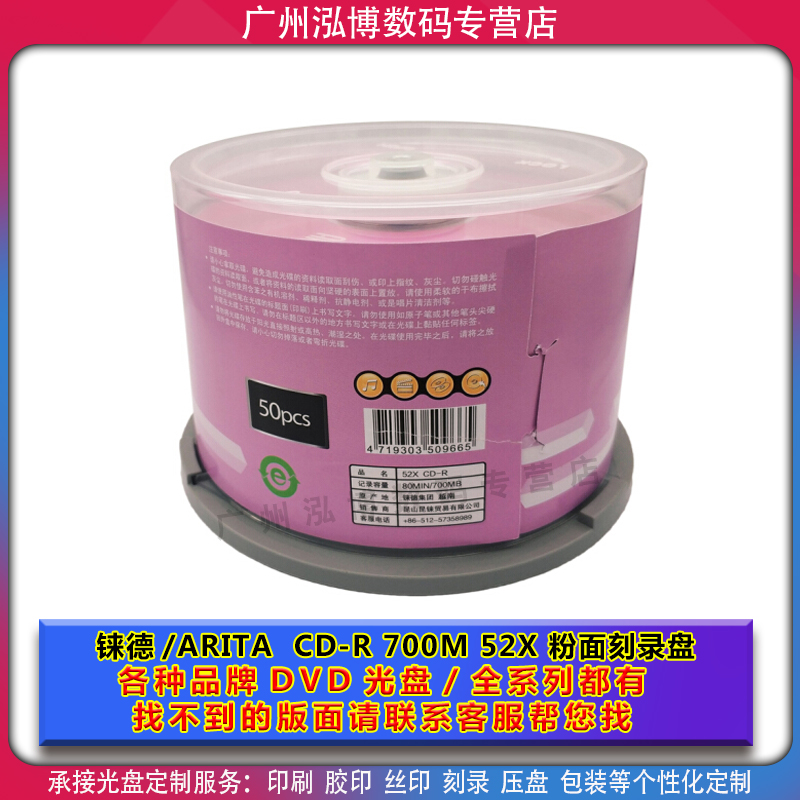 铼德(ARITA) e时代系列 CD-R 空白光盘 52速700M刻录盘 桶装50片
