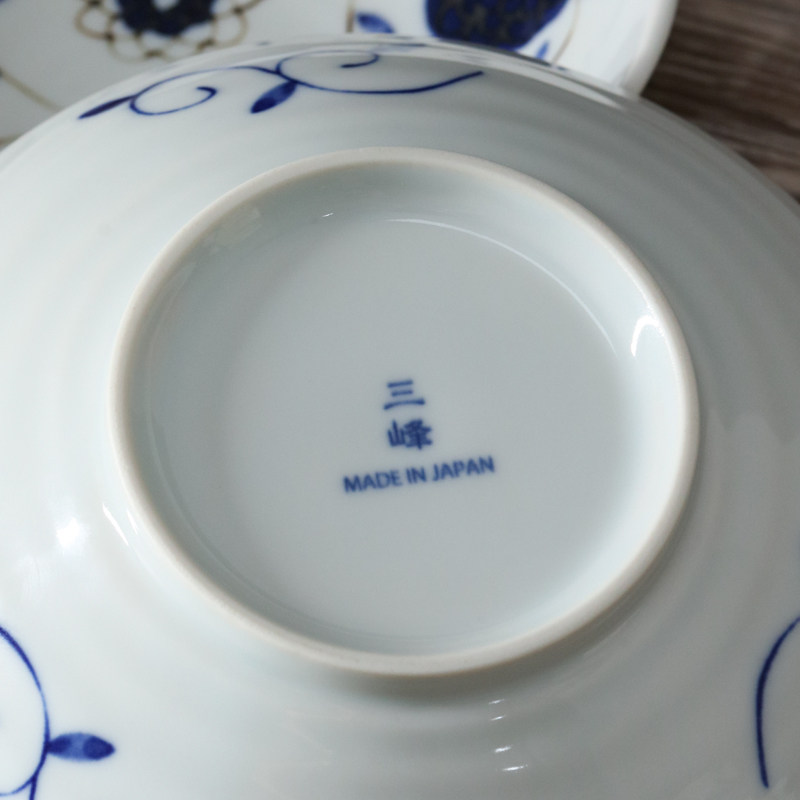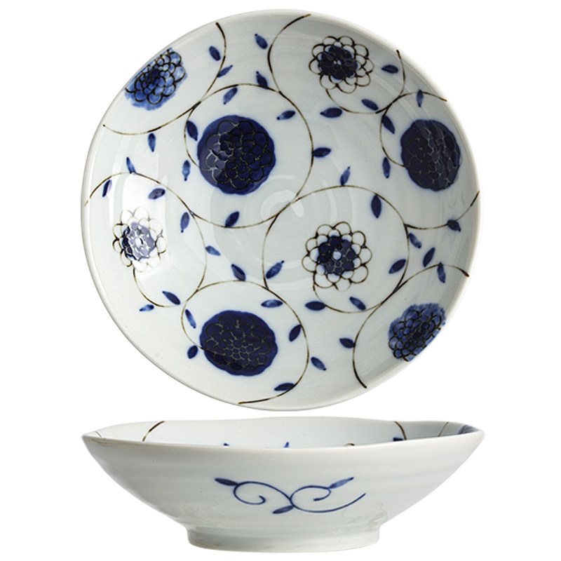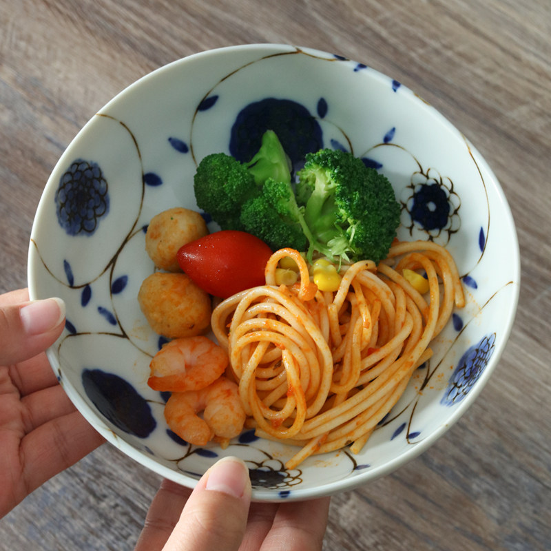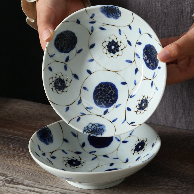 日本进口美浓烧陶瓷餐盘蓝绣球釉下彩日式沙拉水果盘深钵甜品盘