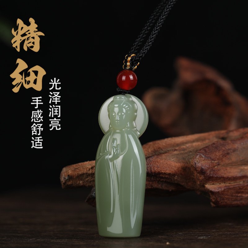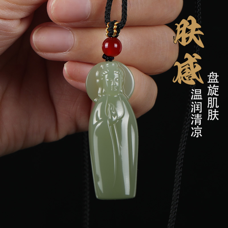 唐今玉天然和田玉青海料立体素衣观音精致和田玉《吉祥旗袍》百搭
