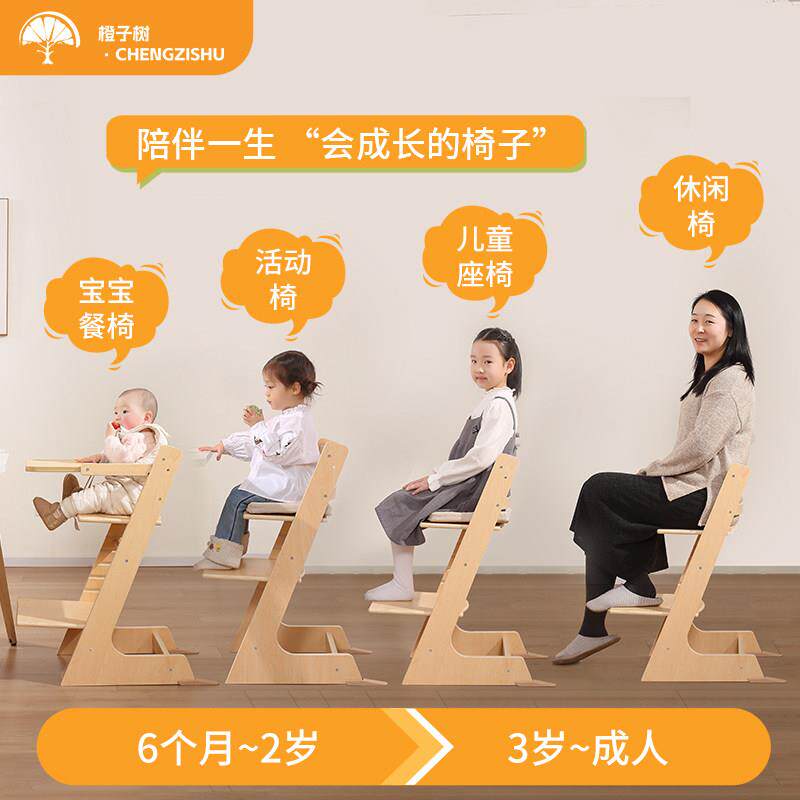 成长椅儿童餐椅实木宝宝吃饭座椅学习椅多功能高可调节婴儿高脚椅