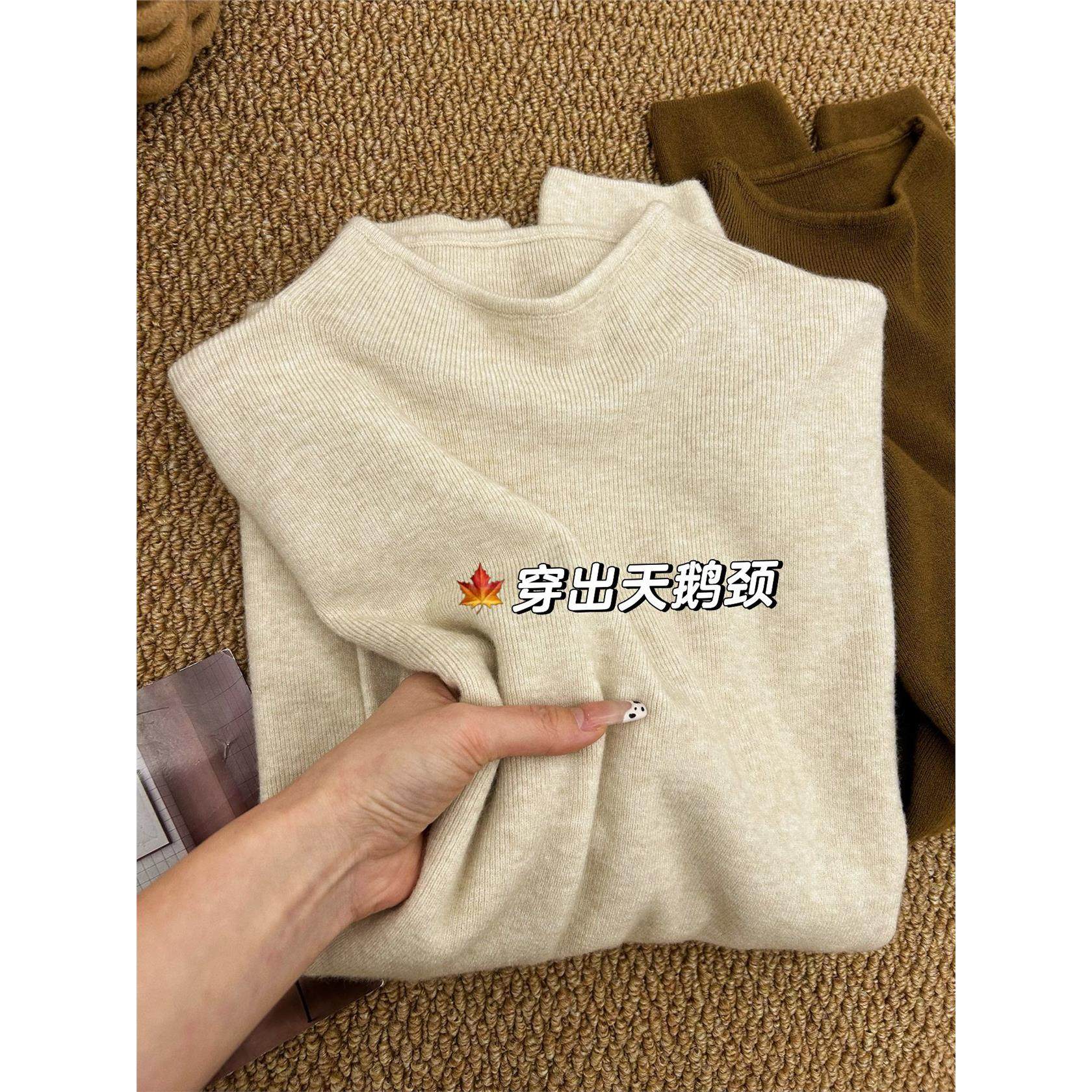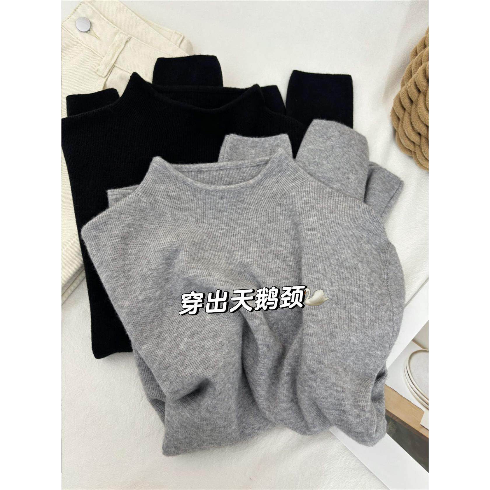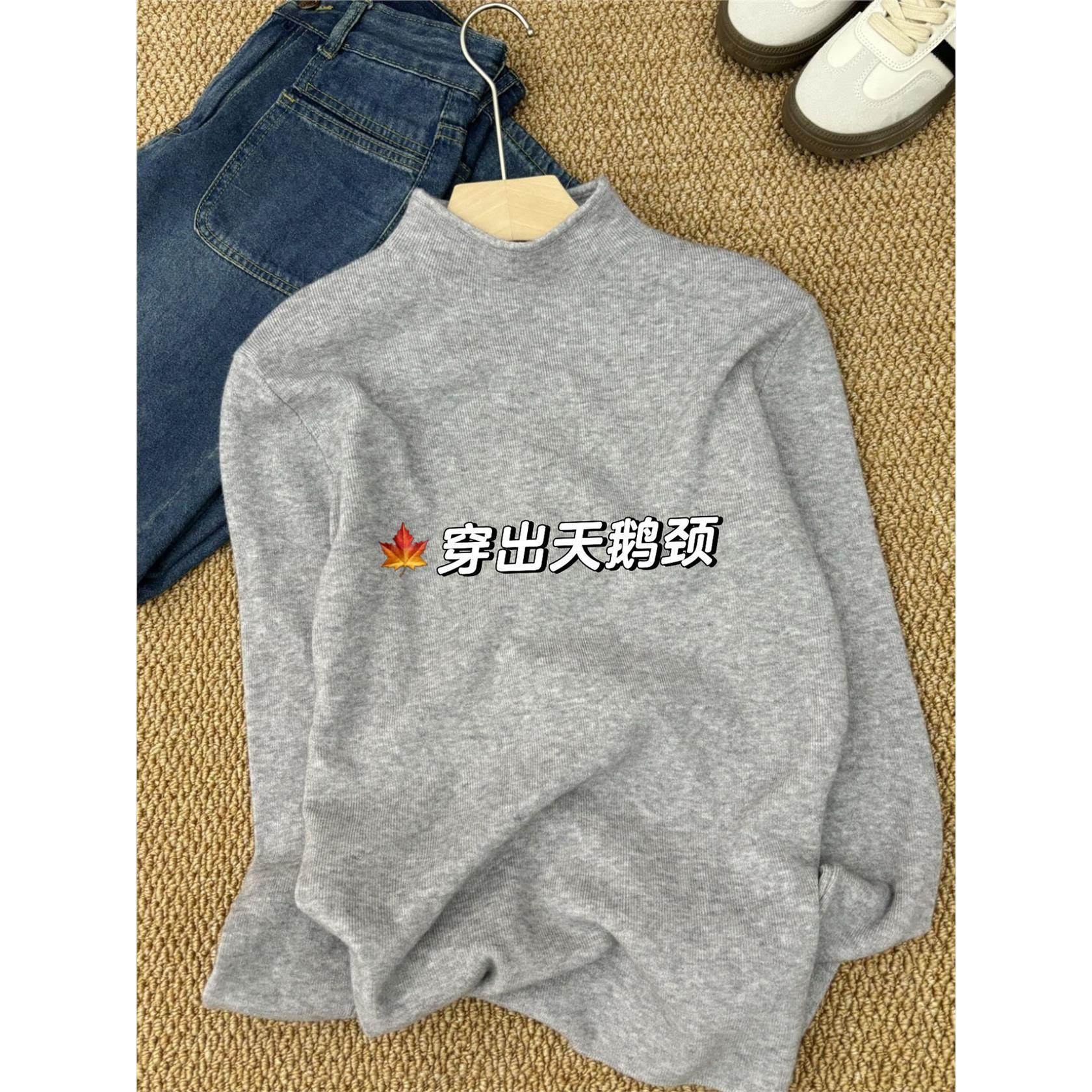 软糯深灰色半高领叠穿打底衫女秋冬高级感小立领内搭毛衣针织上衣