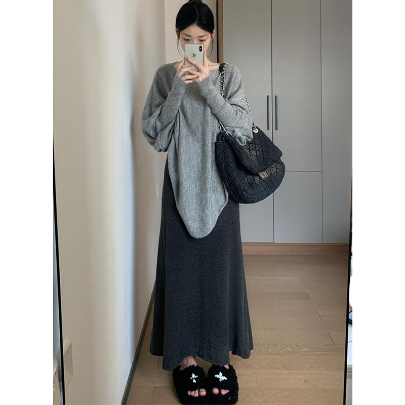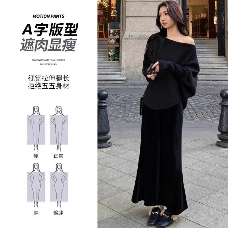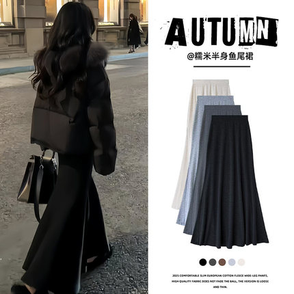 黑色针织鱼尾裙女秋冬季高腰显瘦a字半身裙韩系百搭中长款包臀裙