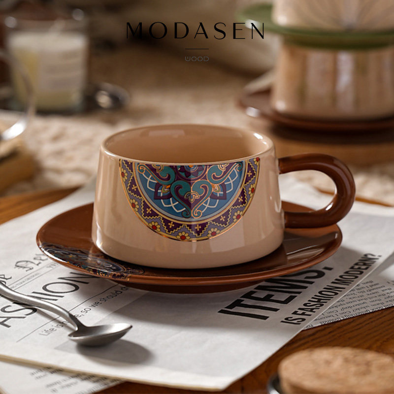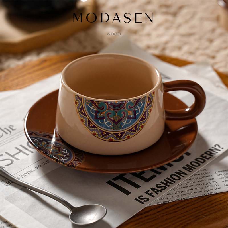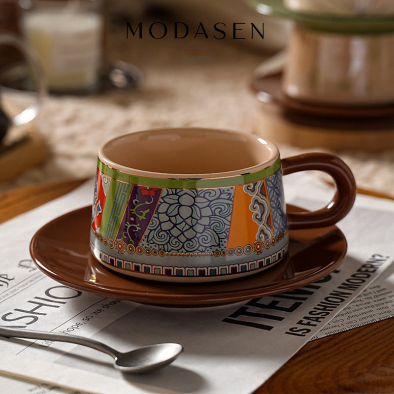MODASEN中古藏族风陶瓷咖啡杯碟