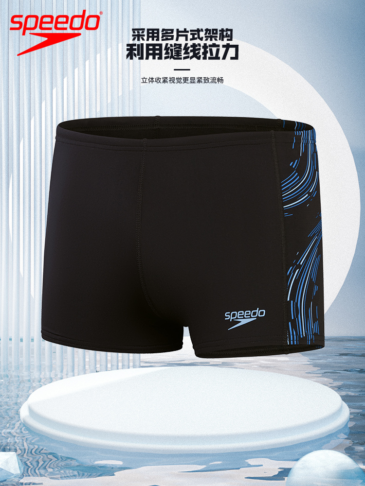 Speedo24新款平角男士泳裤防尴尬速干抗氯印花专业训练游泳裤