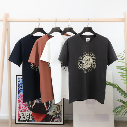 美式复古印花!夏季新款男士亲肤透气圆领磨毛全棉打底短袖T恤衫
