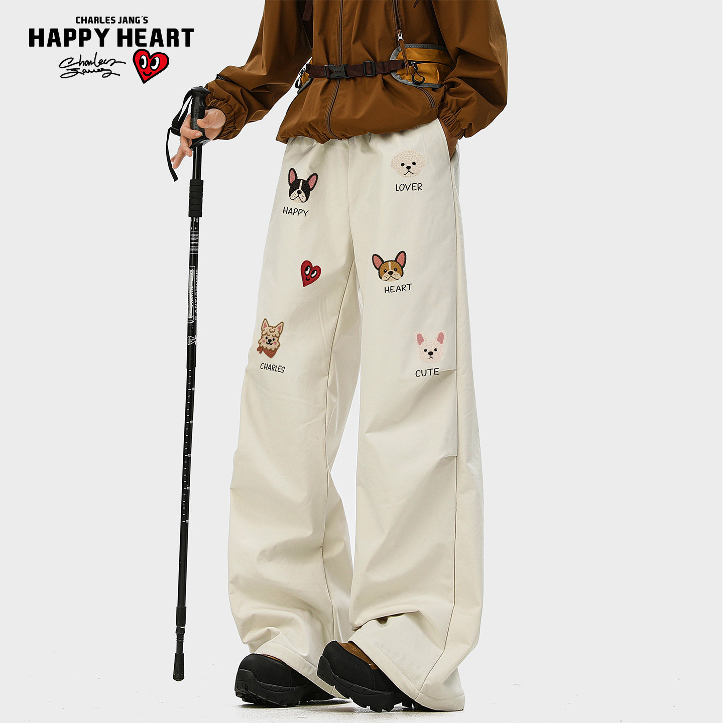 查尔斯桃心休闲长裤男2025冬季加绒情侣宽松休闲防风防寒直筒卫裤