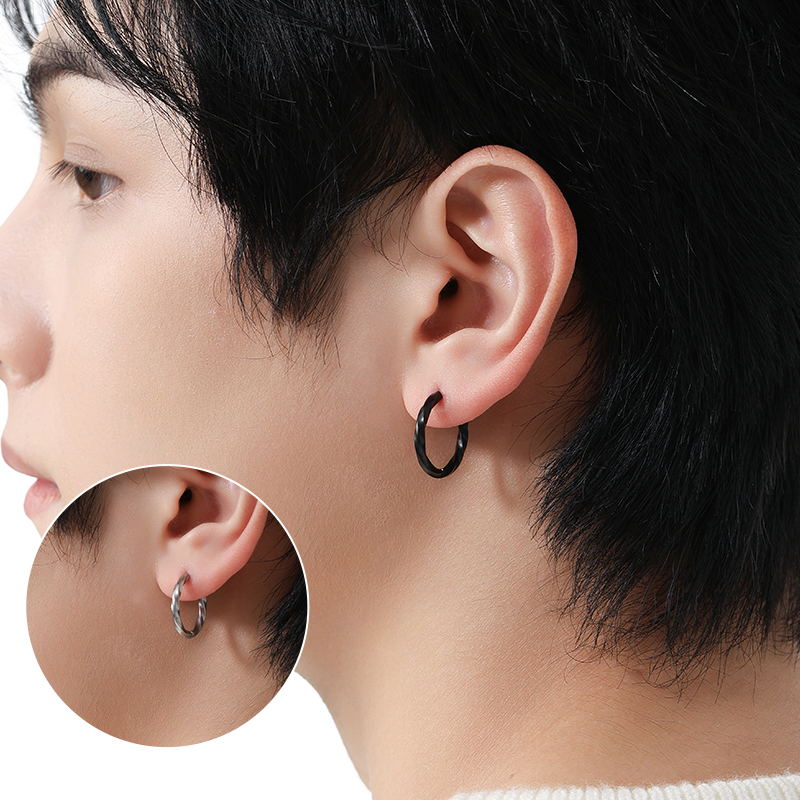 莫比乌斯钛钢素圈耳环男士耳钉女圈圈耳圈高级感耳扣男生独特耳饰