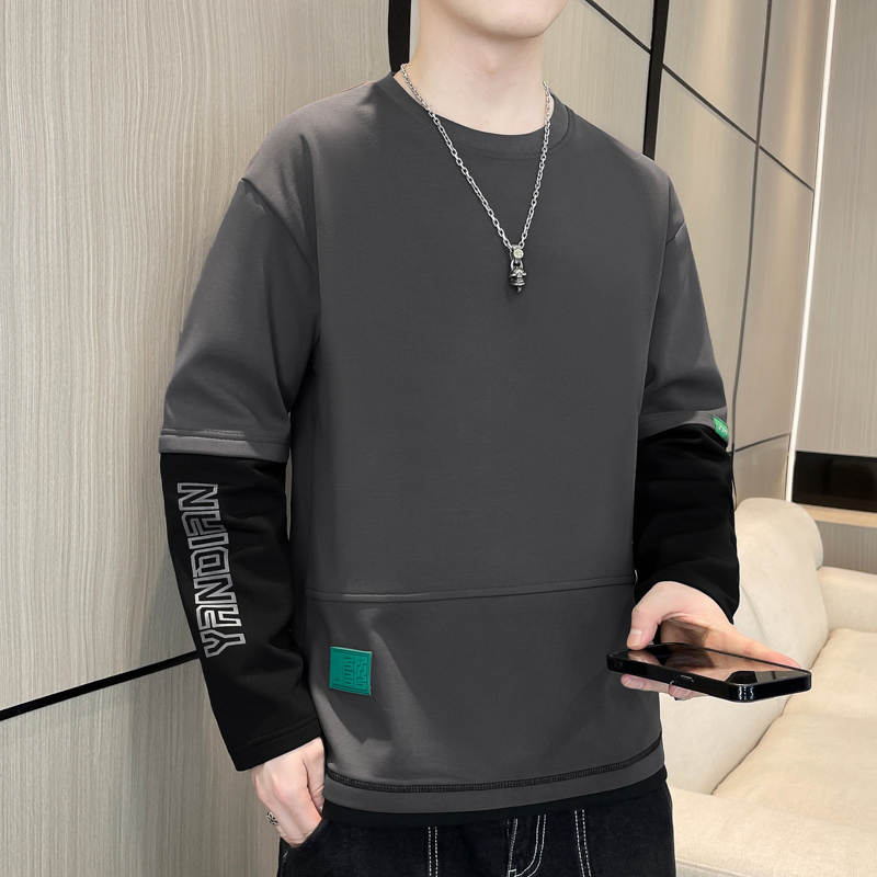 假两件长袖t恤男春秋款圆