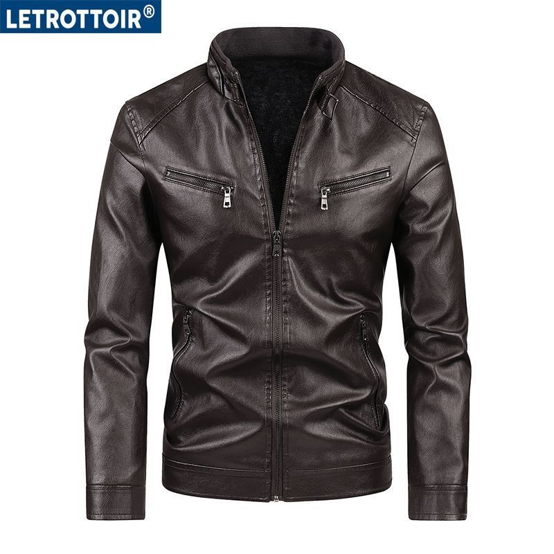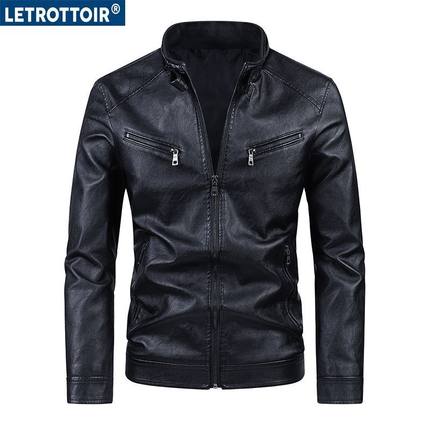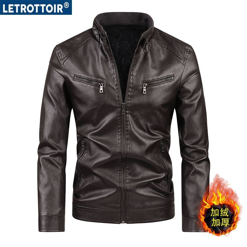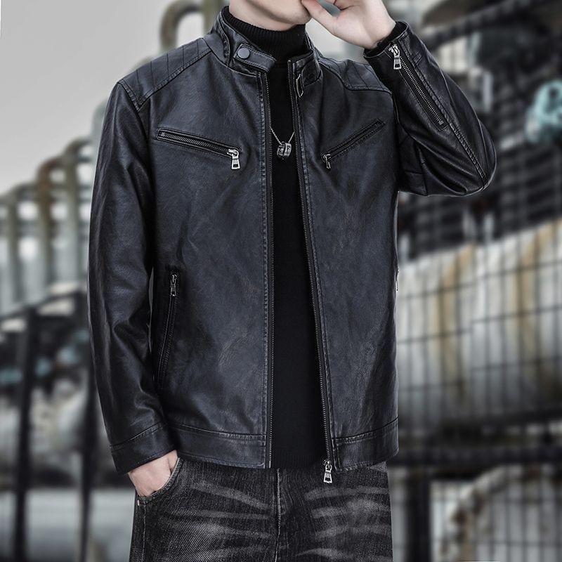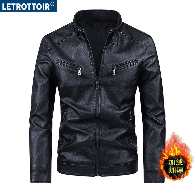 跨境电商秋冬新款皮衣外套男加绒休闲机车服修身立领商务皮夹克男