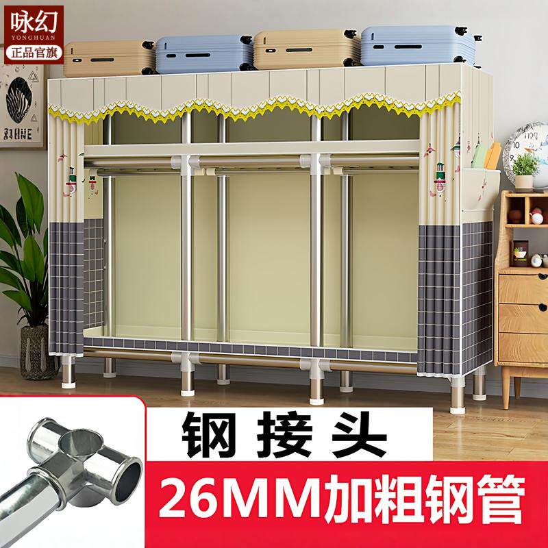 简易衣柜钢管布衣柜加粗加固卧室组装家用衣橱出租房挂衣收纳架子