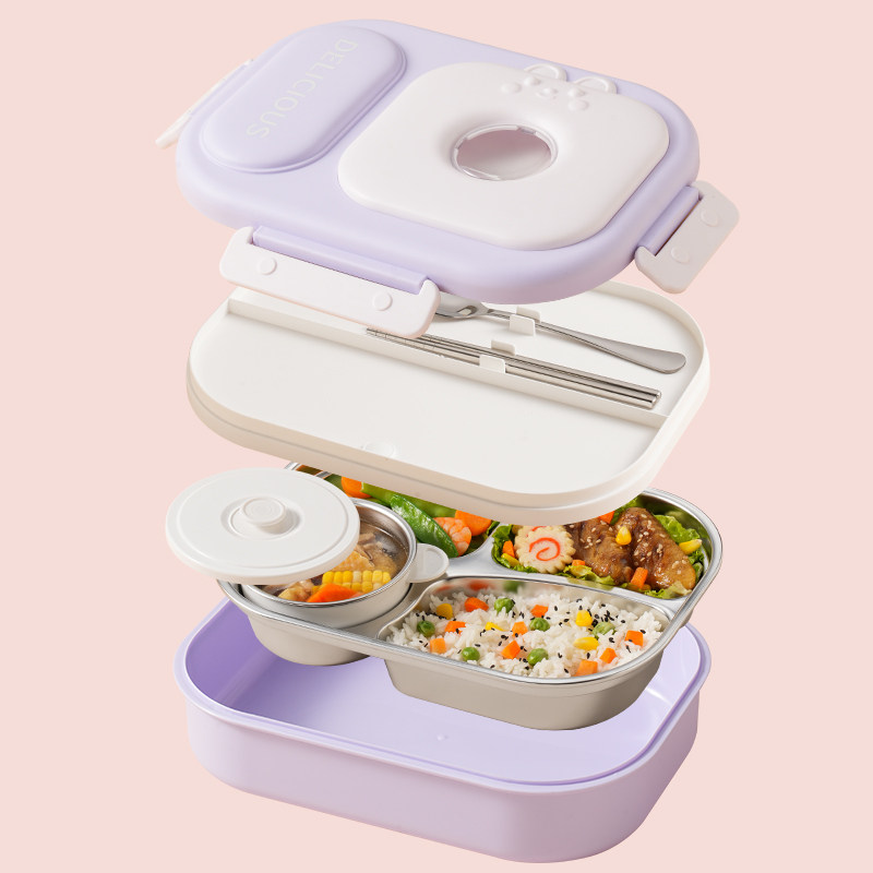 饭盒中小学生专用316不锈钢保温分格便当盒儿童食堂打饭餐盘餐盒