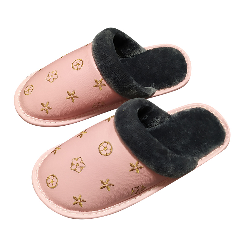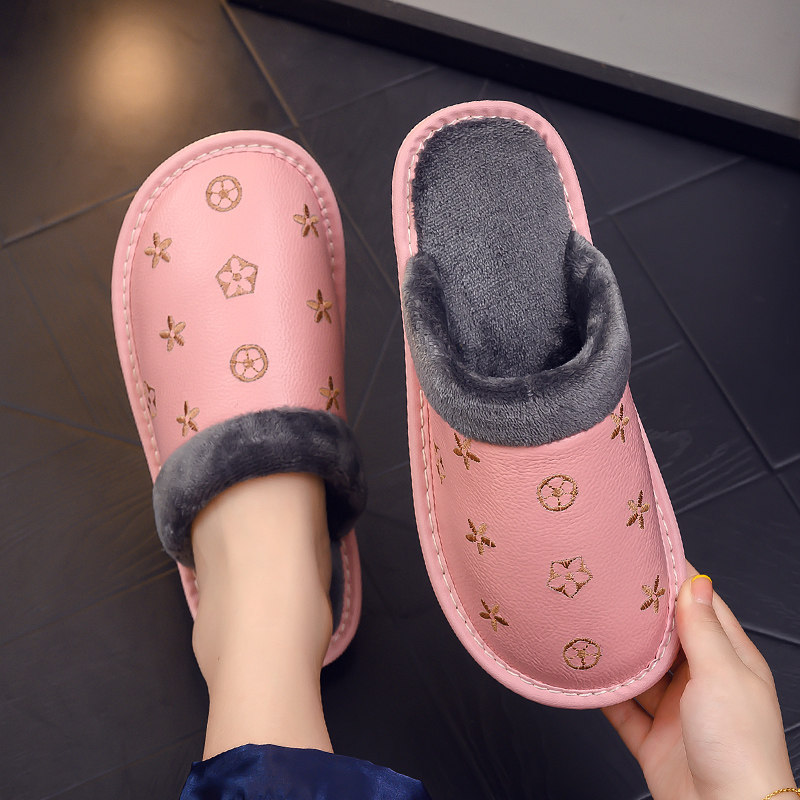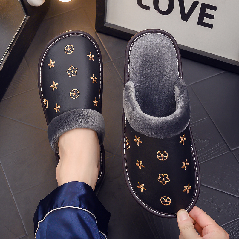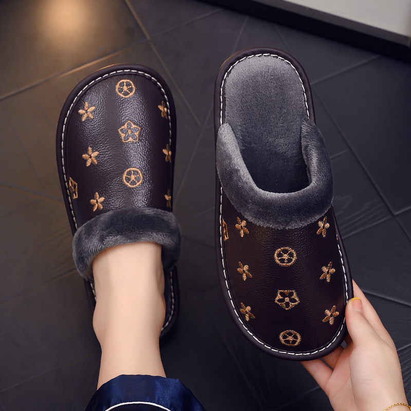 真皮家用静音牛筋软底防滑居家棉拖鞋男女秋冬季室内防水加绒保暖