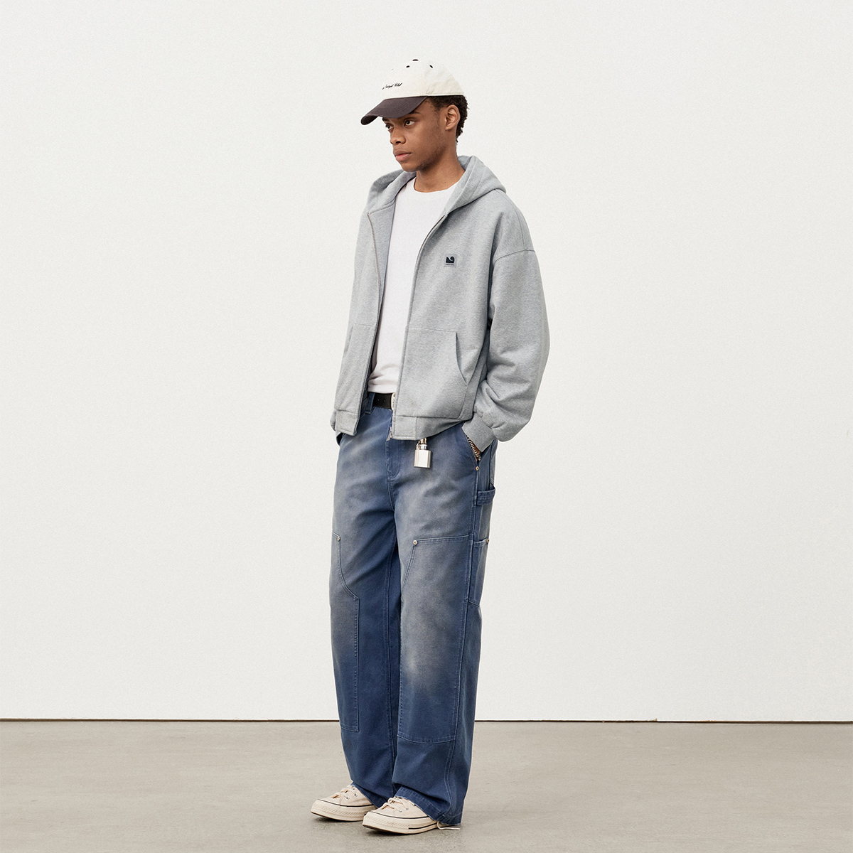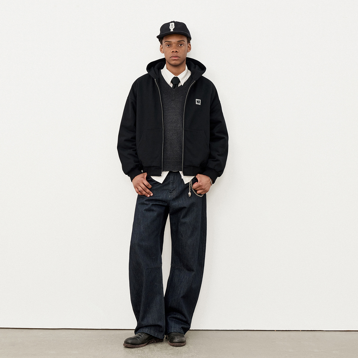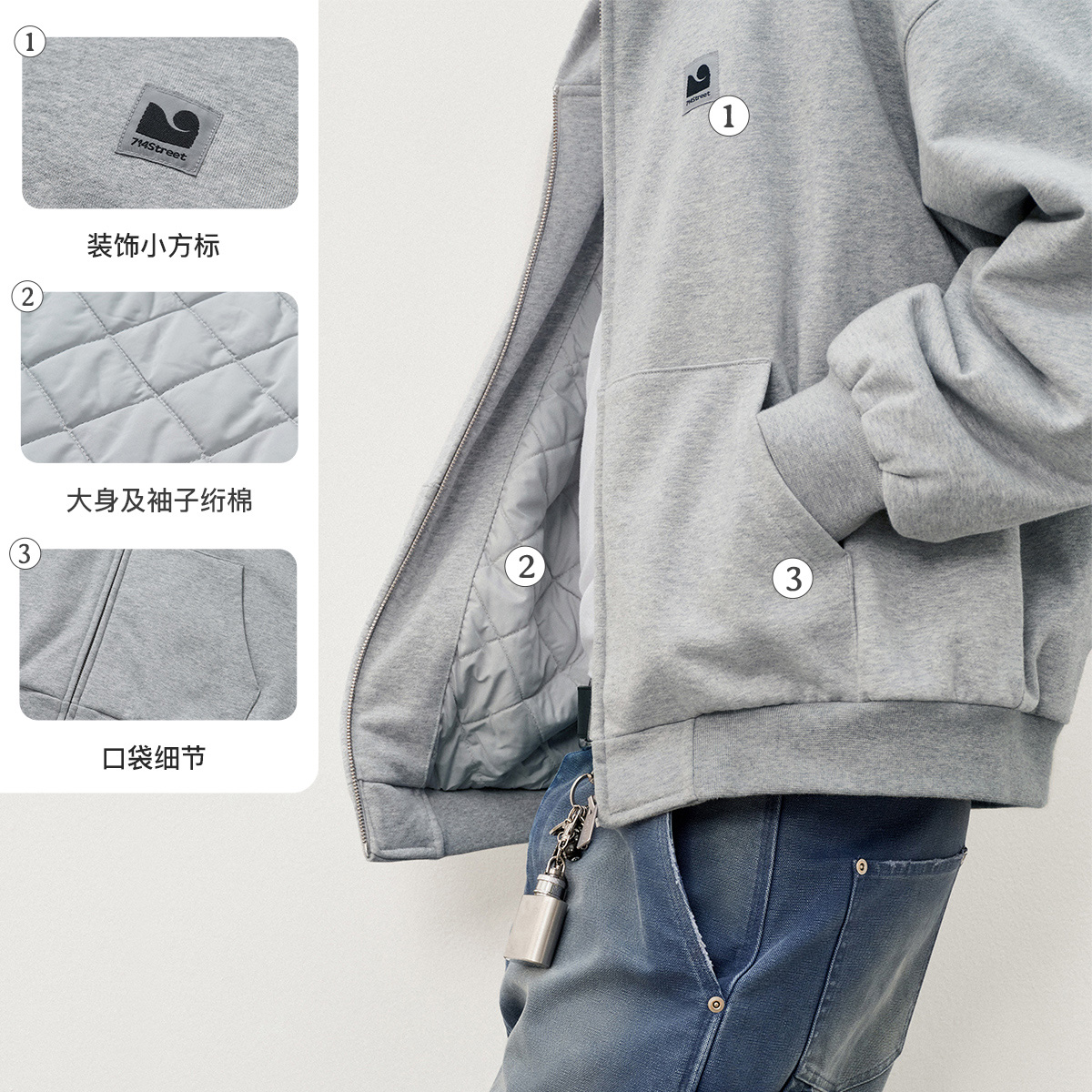 714street日系连帽卫衣开衫2025冬季潮牌夹棉外套宽松针织棉服男