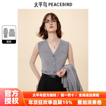 商场同款 太平鸟绵羊毛山羊绒混纺针织开衫长款两件套A1EAE3421