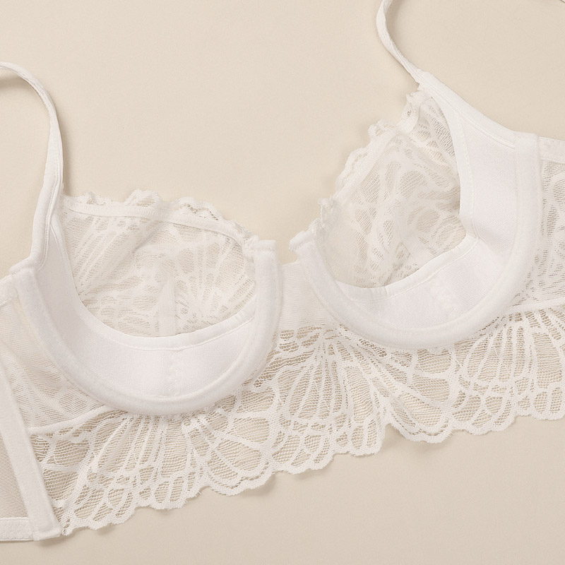 艾舒客性感蕾丝文胸套装内衣黑色薄款女胸罩有钢圈深V透明超薄杯