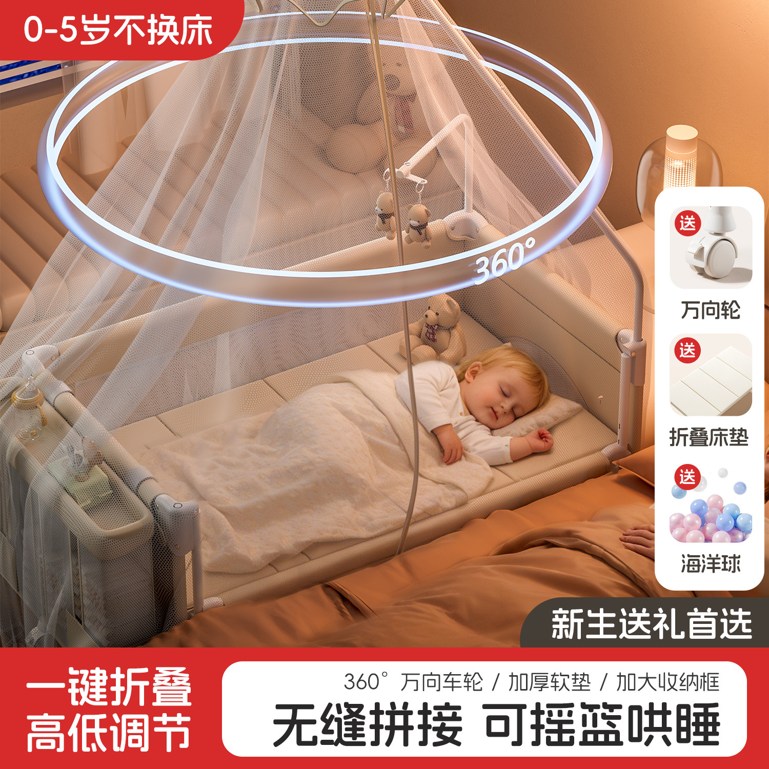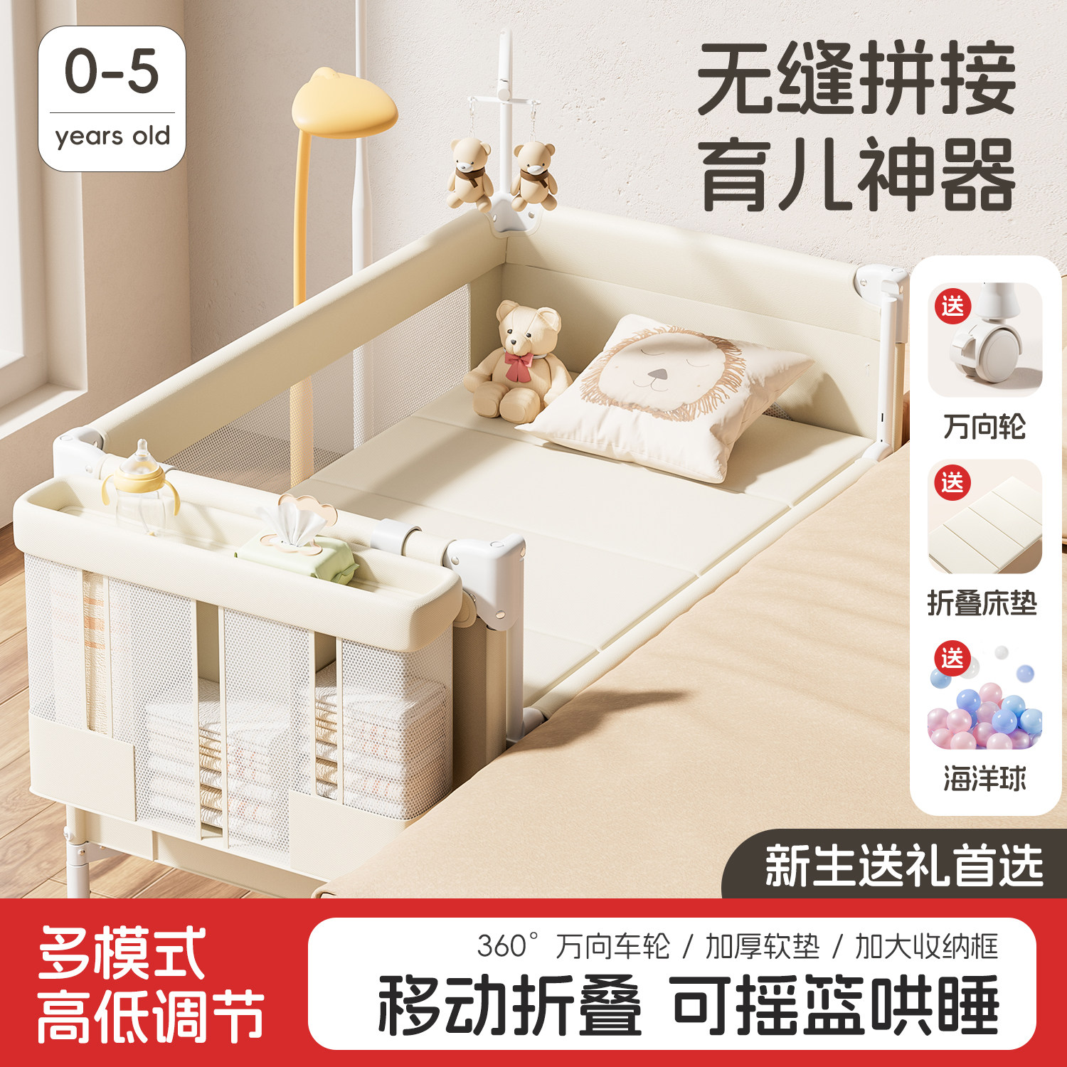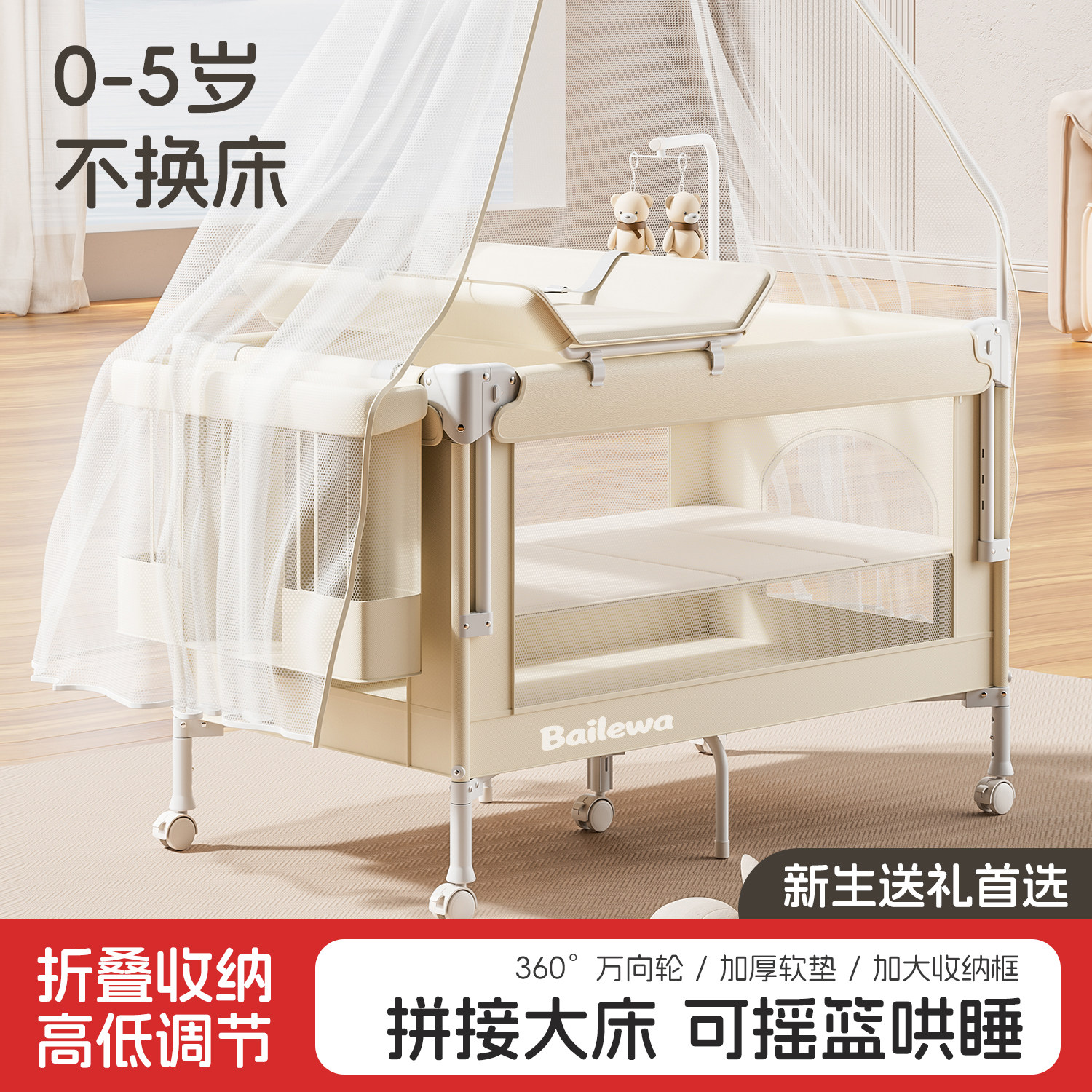 新生婴儿床可调高度可移动可折叠拼接便携宝宝多功能尿布台游戏床