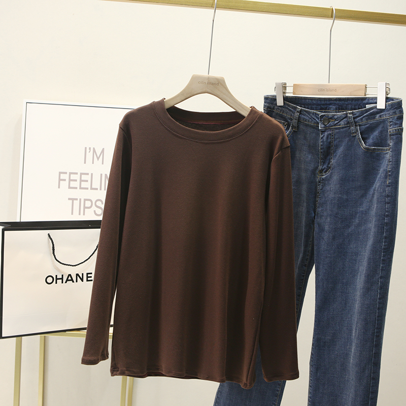 大码女装200斤胖mm加肥加大宽松圆领长袖白色大板型长袖T恤衫汗衫