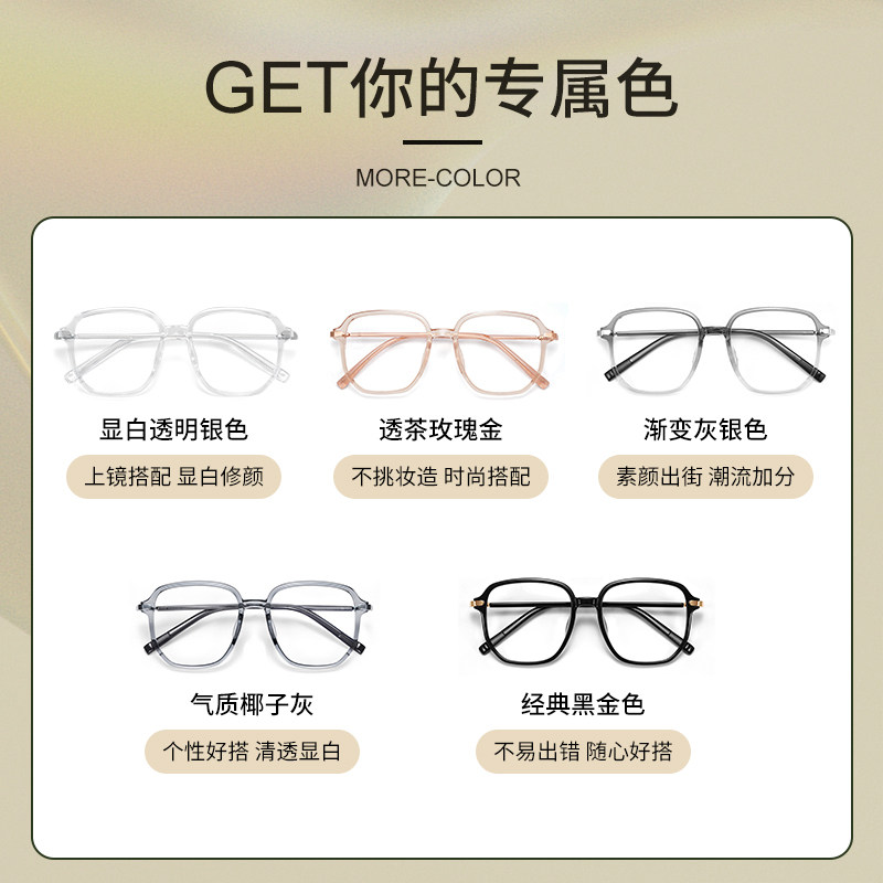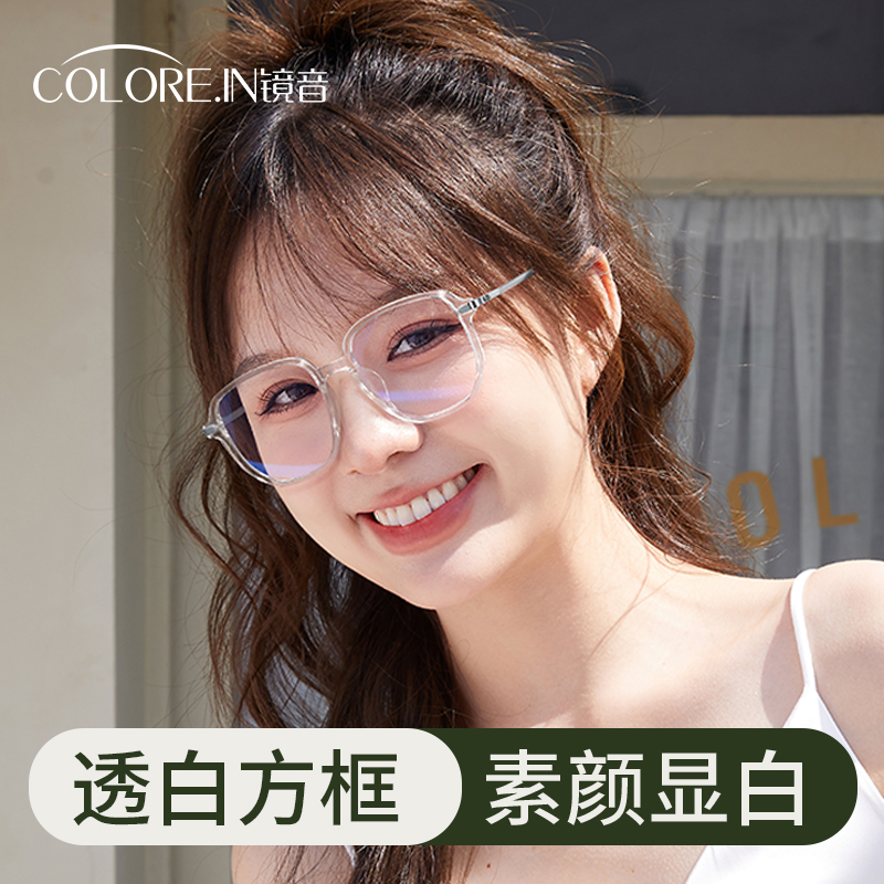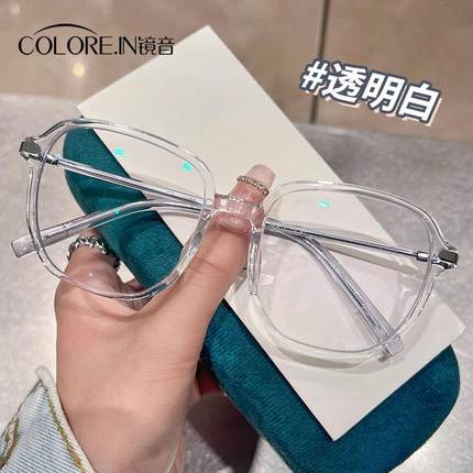 透明近视眼镜框女款白色超轻可配度数网上配防蓝光大脸眼睛框镜架