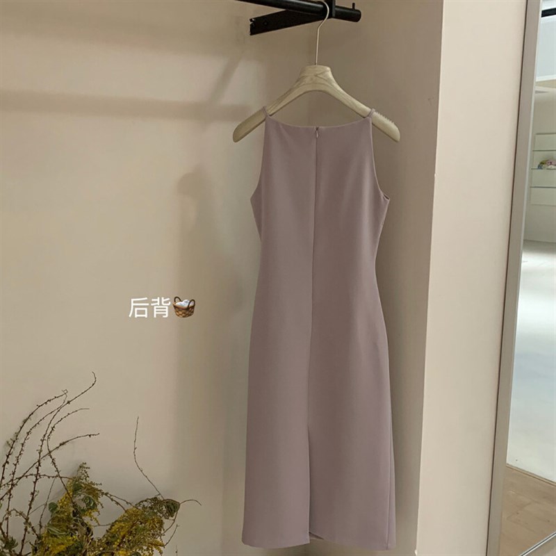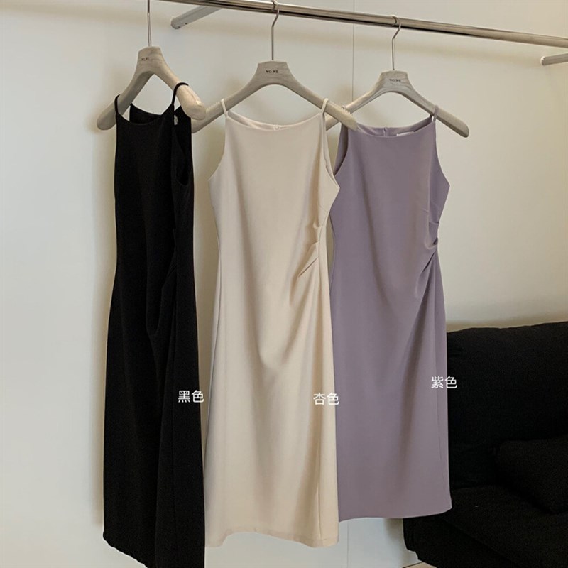 法式一字肩挂脖吊带裙女夏季穿搭气质高级感漂亮收腰无袖连衣裙