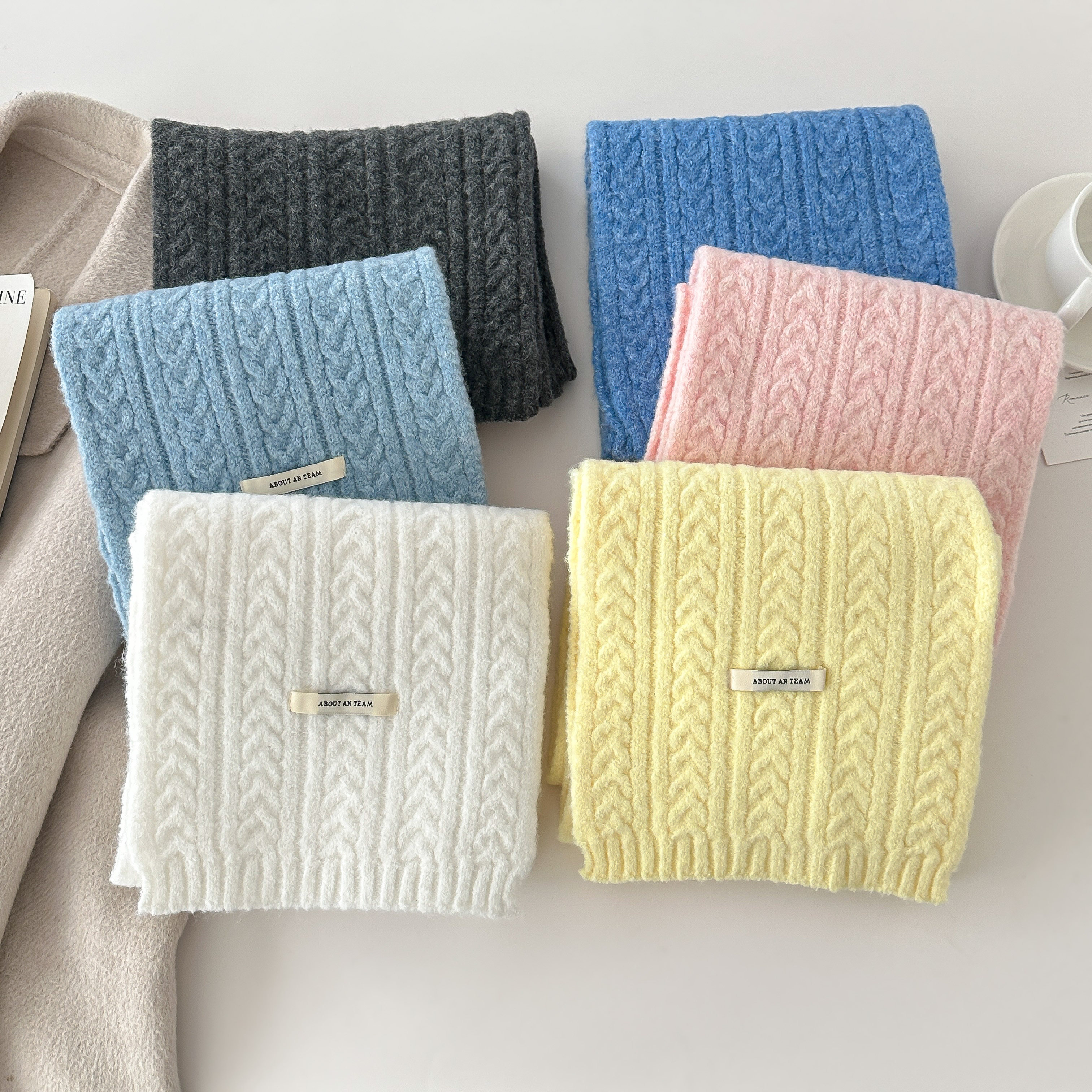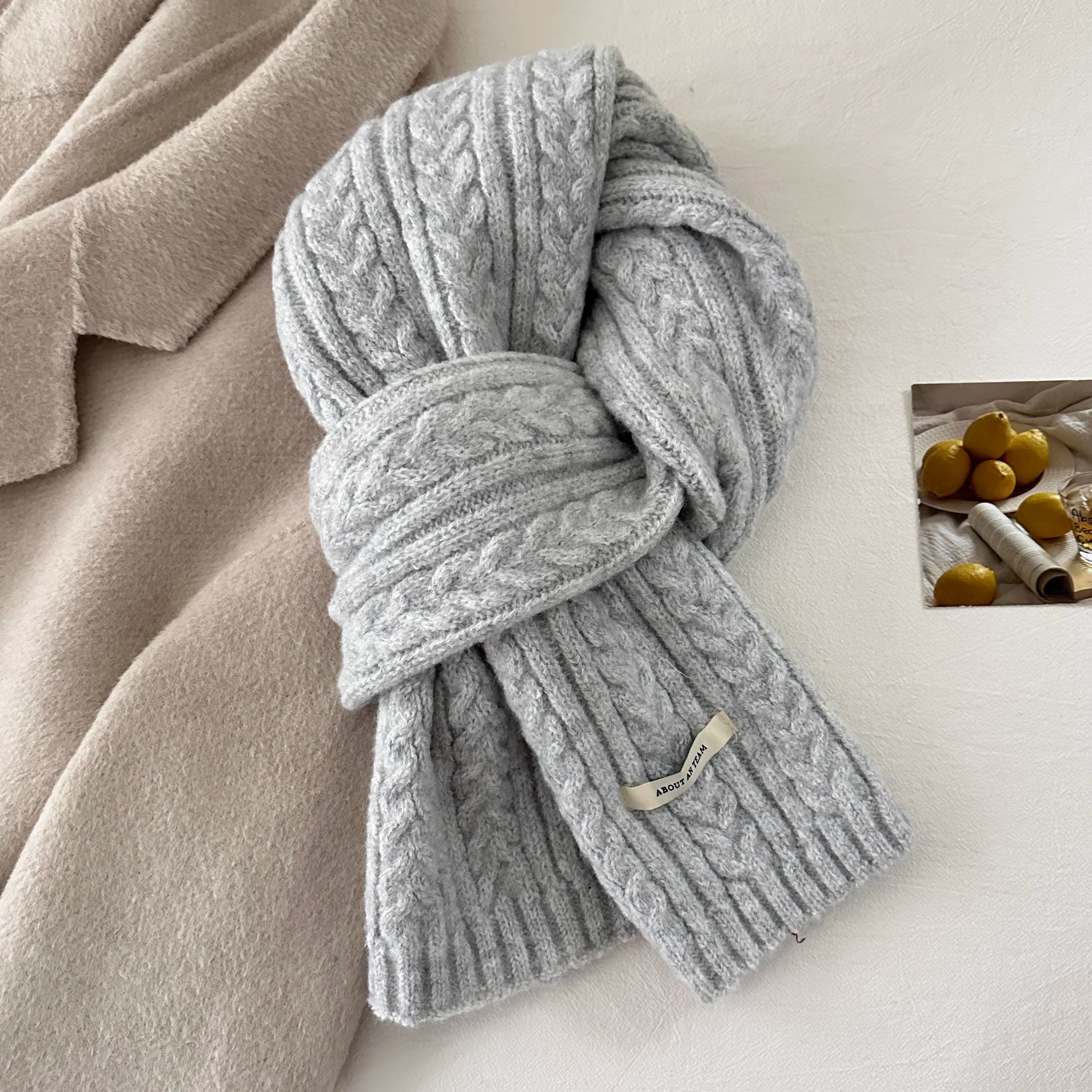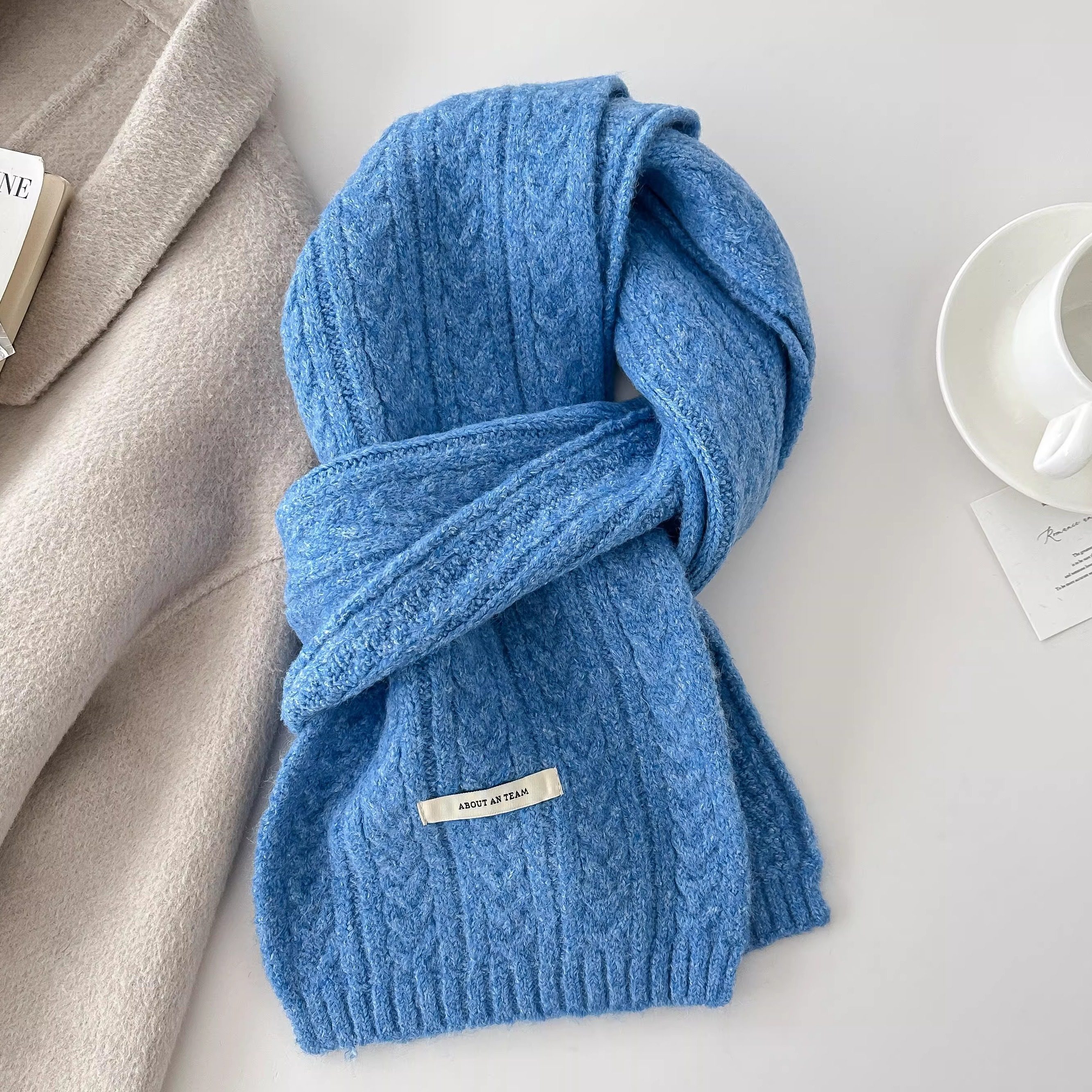 蓝色高级感含羊毛围巾女秋冬季韩系氛围感保暖厚针织百搭围脖男