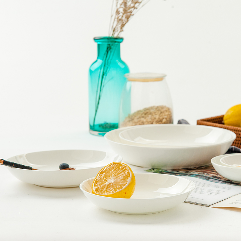 纯白家用唐山骨瓷釉下彩深盘菜盘子饭盘餐具深盘子小碟子汤菜碟