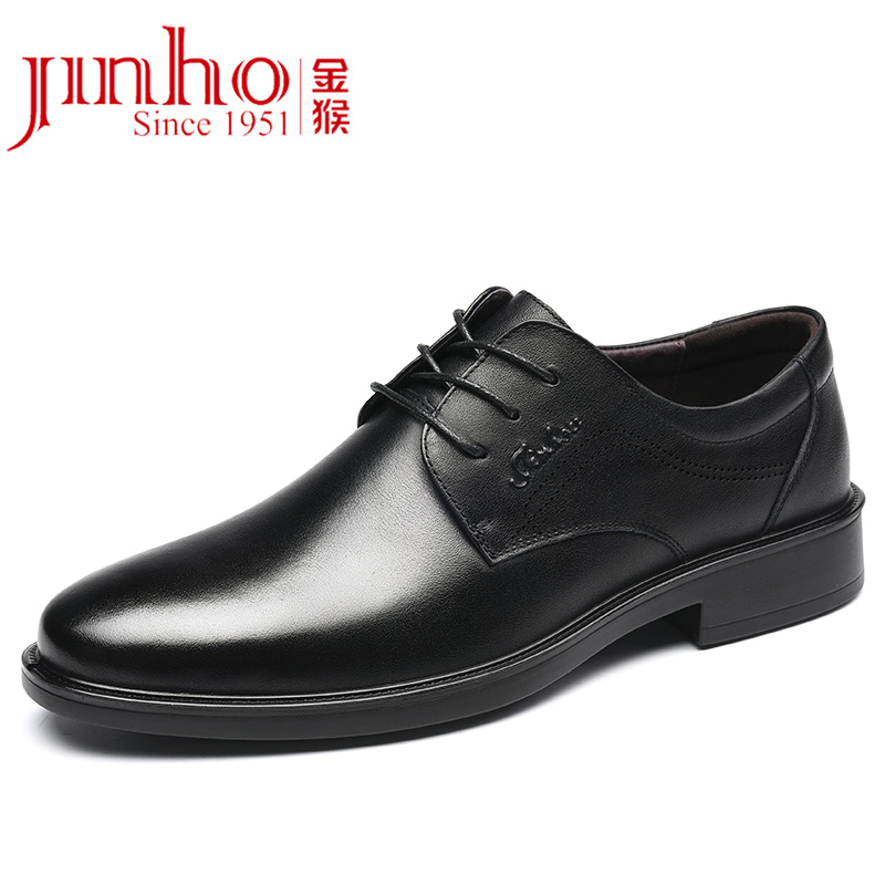 金猴男士皮鞋春季新款黑色真皮英伦风商务正装平底牛皮上班皮鞋男