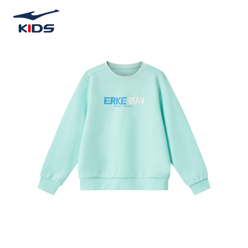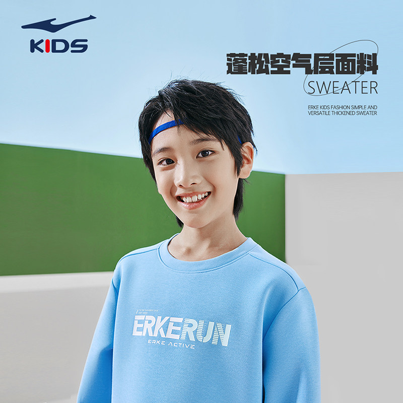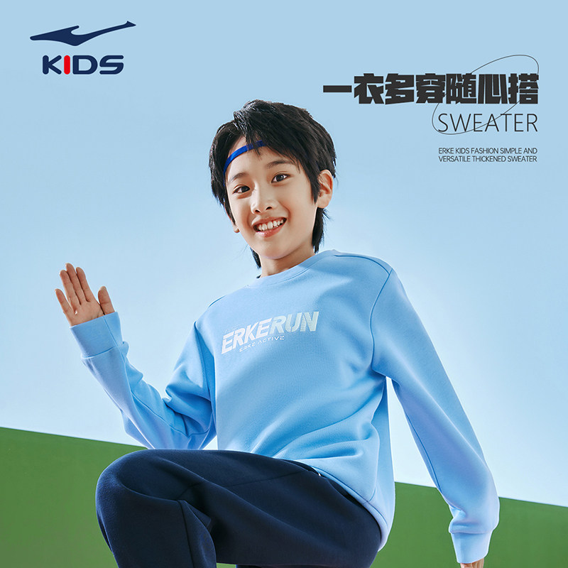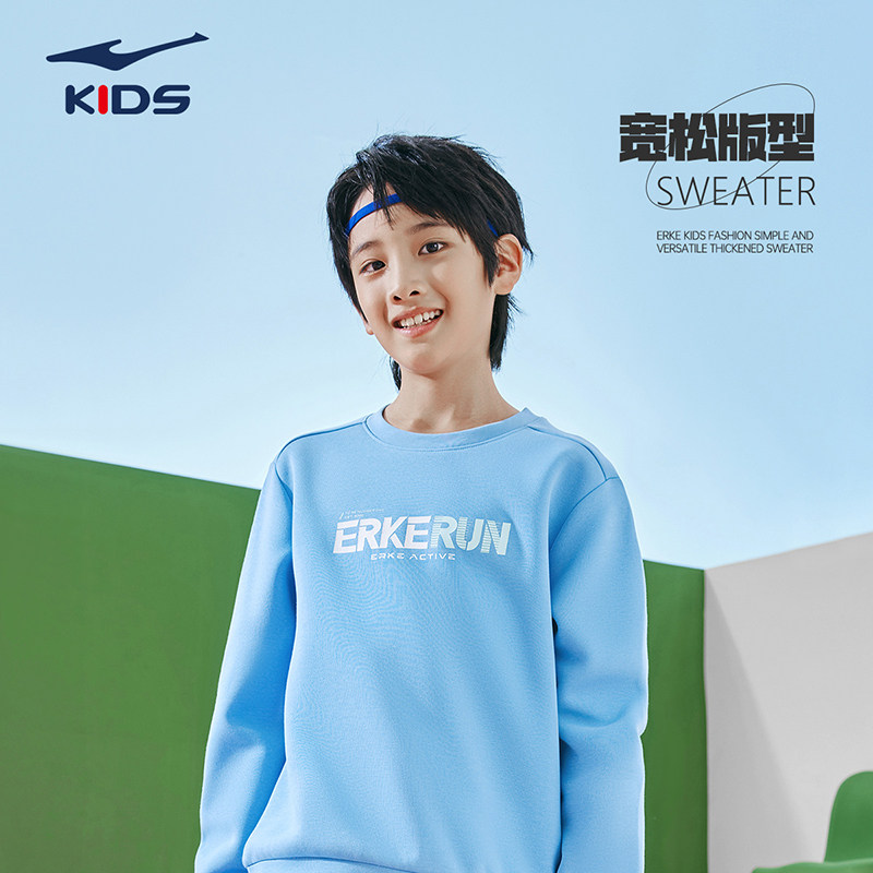 鸿星尔克儿童百搭卫衣秋加绒男大童圆领套头衫休闲上衣女孩运动衫