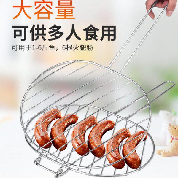 烤鱼夹不锈钢加粗大号 烧烤用具烤肉烤鱼网夹子加密网格圆形工具