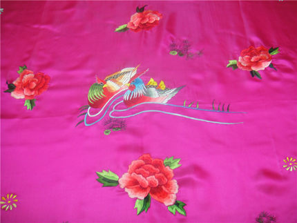 杭州真丝被面桑蚕丝软缎婚庆全棉被里结婚被套 鸳鸯戏水手工绣花