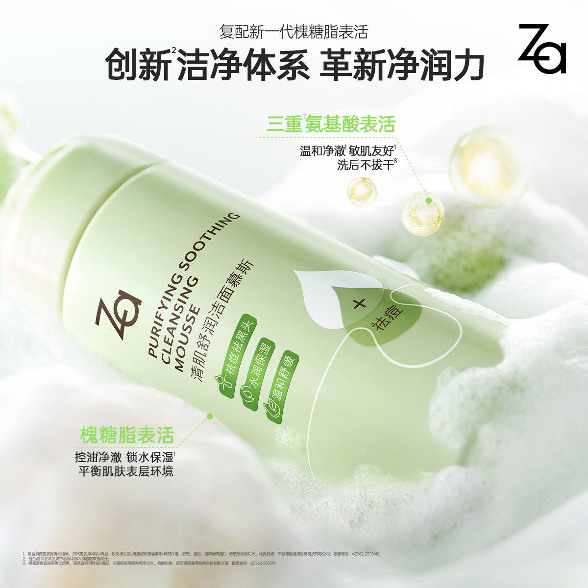 Za姬芮清肌舒润洁面泡沫慕斯氨基酸控油洗面奶女青少年祛痘祛黑头