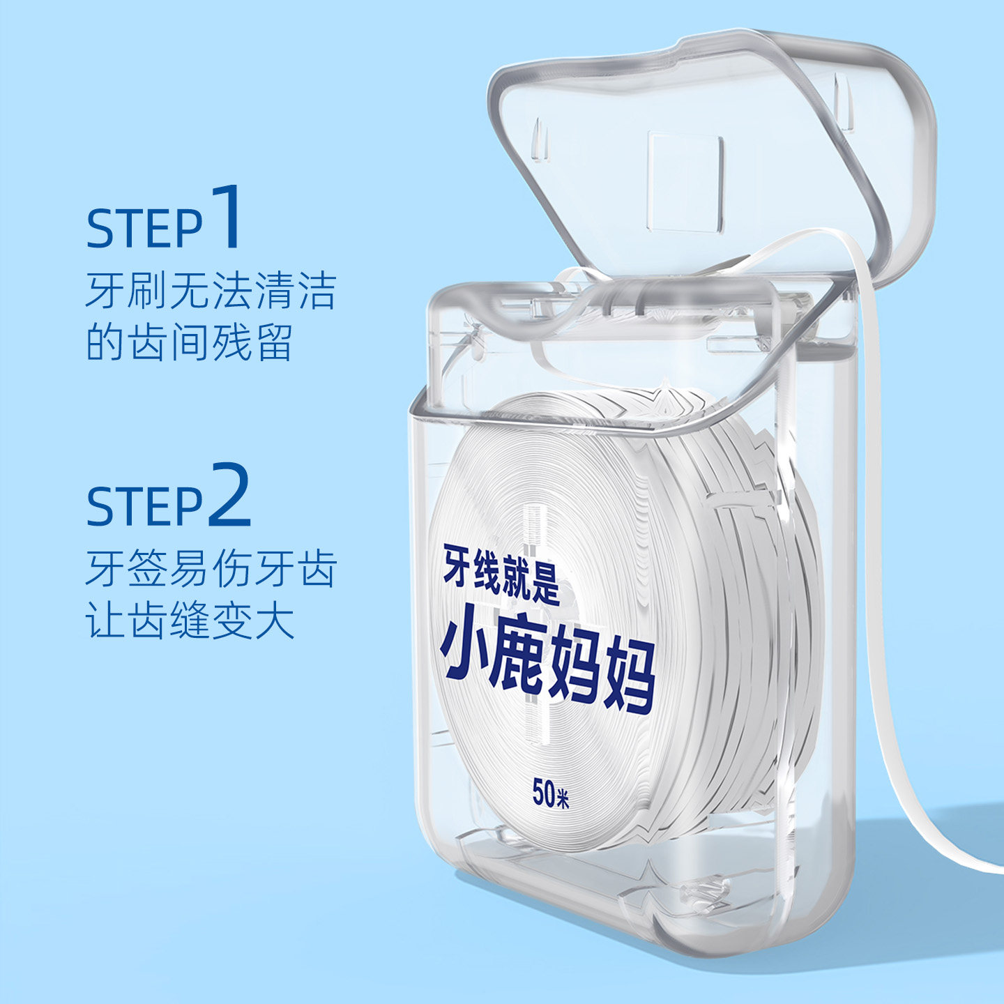 小鹿妈妈口腔卷牙线50m米扁线薄荷剔牙签线超细家庭装剔牙线鱼线