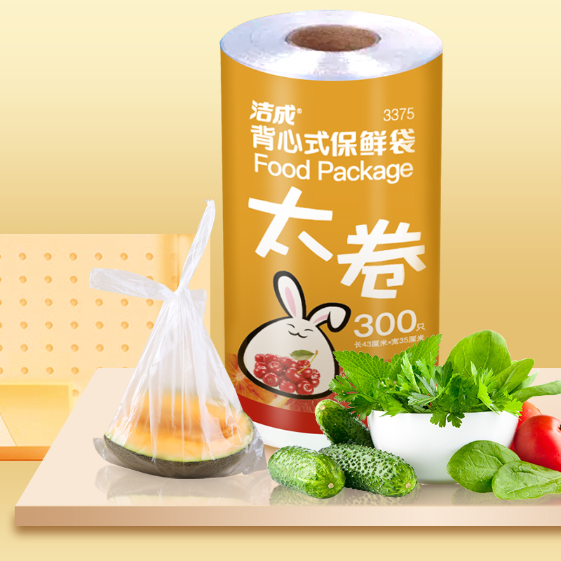 洁成背心保鲜袋大号43CM*35CM卷装易扎易提家用冰箱食品保鲜
