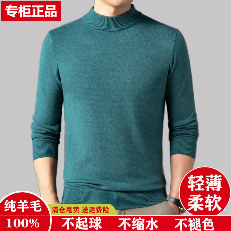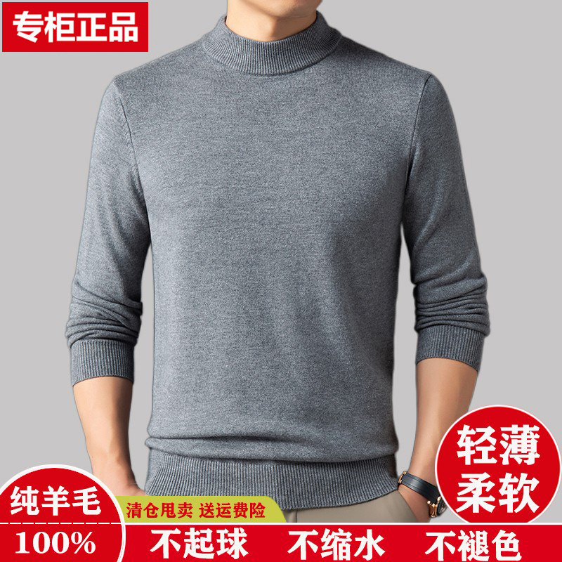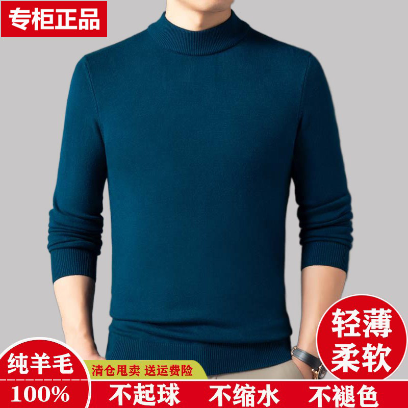 鄂尔多斯市半高领毛衣男中厚100%纯羊毛衫休闲时尚针织打底羊绒衫