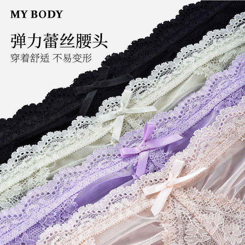 3件129|商场同款MYBODY内裤女棉质底档性感纯欲蕾丝网纱透气短裤