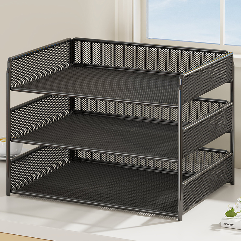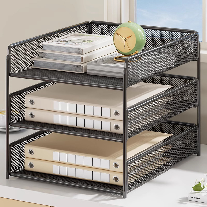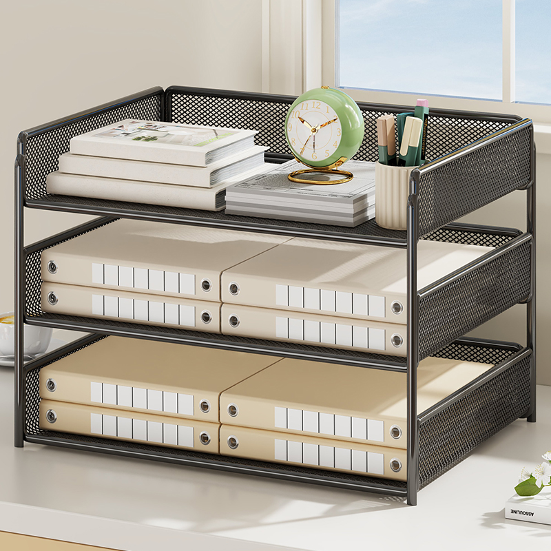办公桌置物架文件柜A4纸资料档案整理架书立架办公用品大全文件架桌面金属铁艺多层文件框收纳盒文件收纳架子