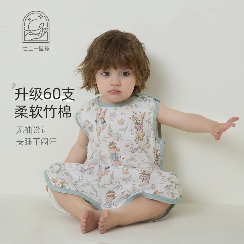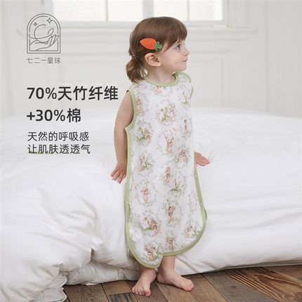 721星球婴儿睡袋夏季无袖背心式睡袋儿童60支R竹棉短袖宝宝连体衣