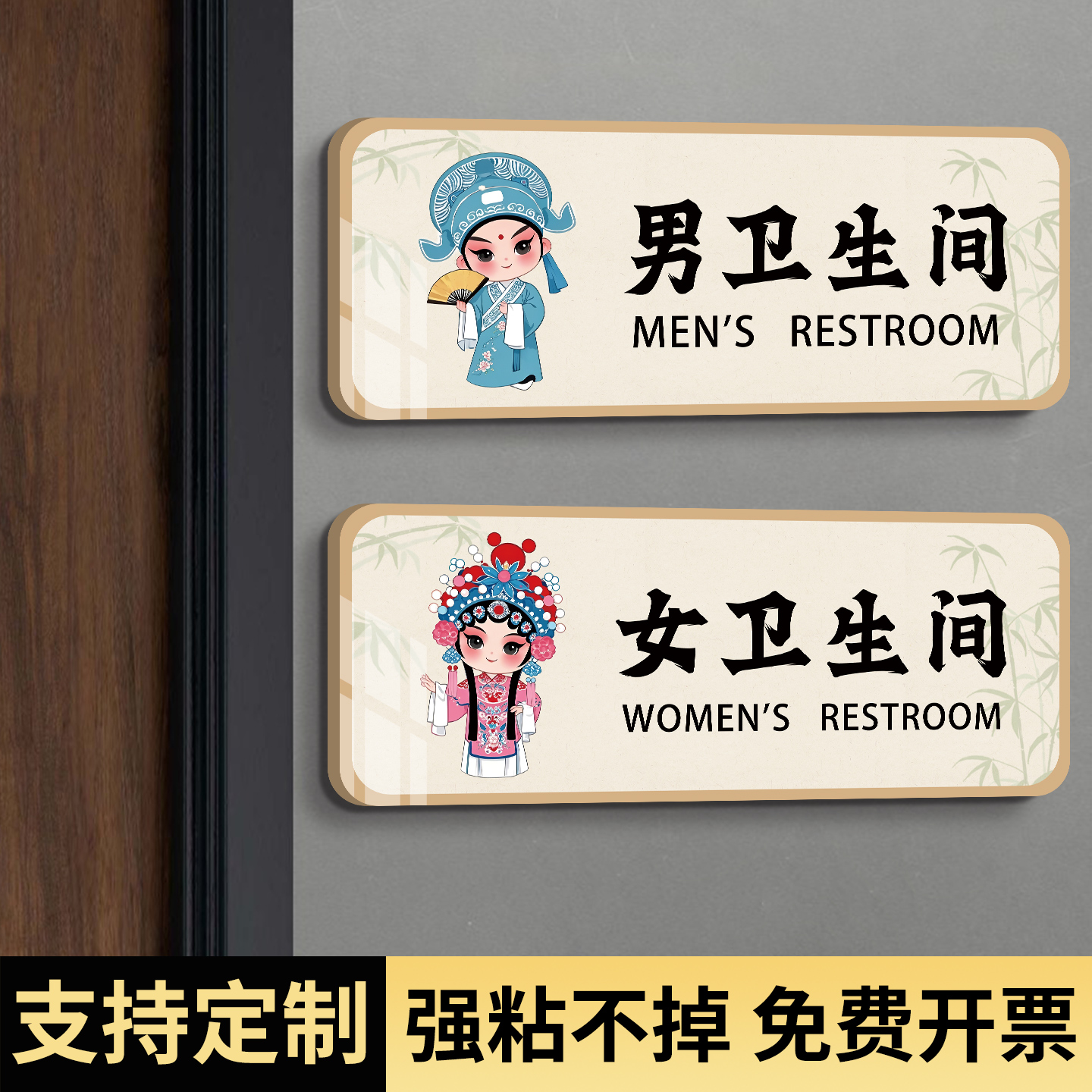 男女卫生间标识牌男女公共厕所标识牌洗手间标志牌男女公厕wc标牌亚克力门牌墙贴创意复古中古风墙贴纸标语牌