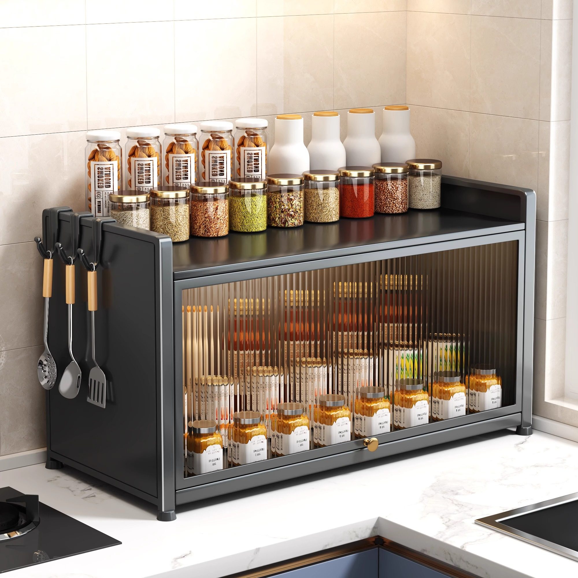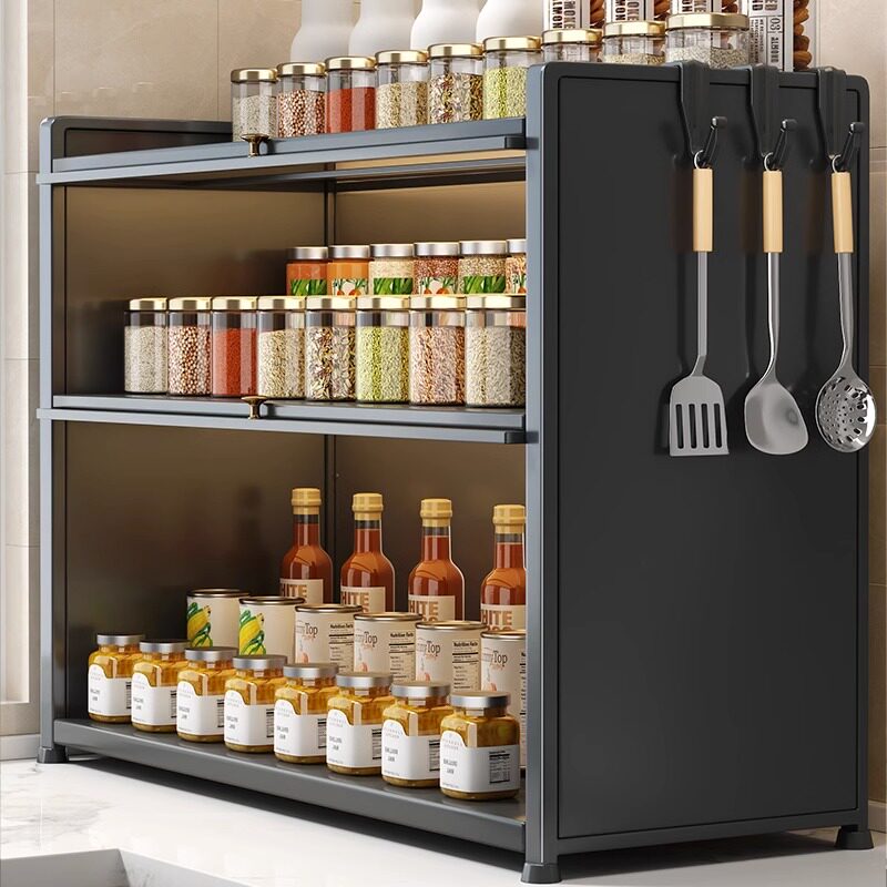 厨房调料品置物架收纳盒家用台面带盖密封调料架柜内分层收纳架子