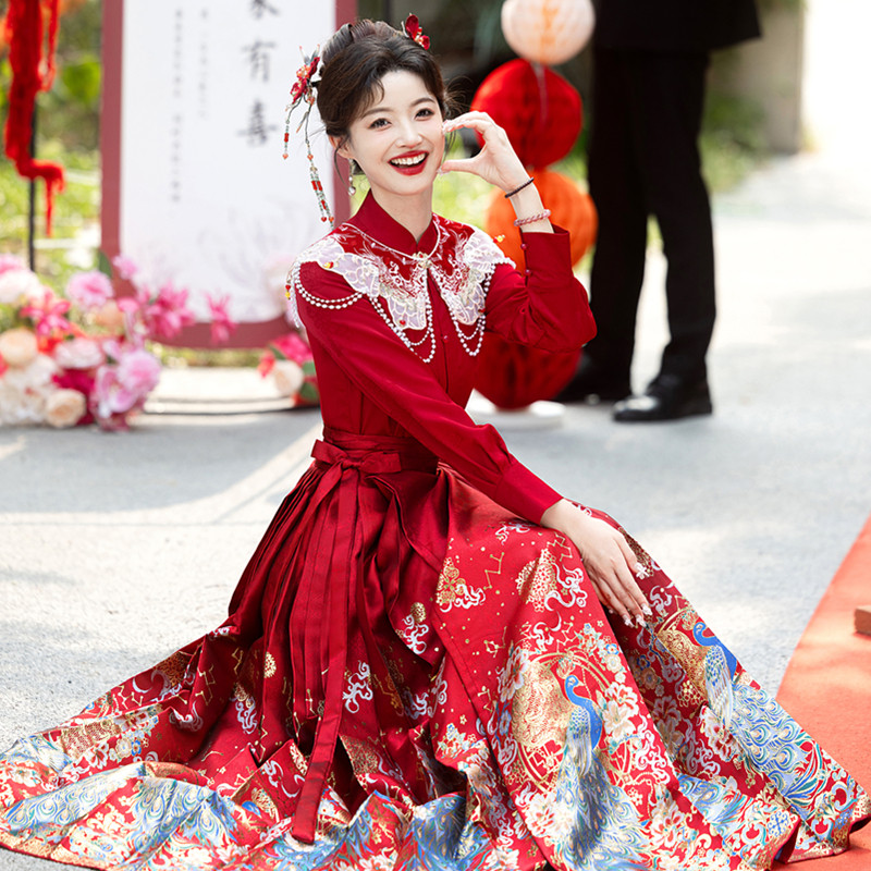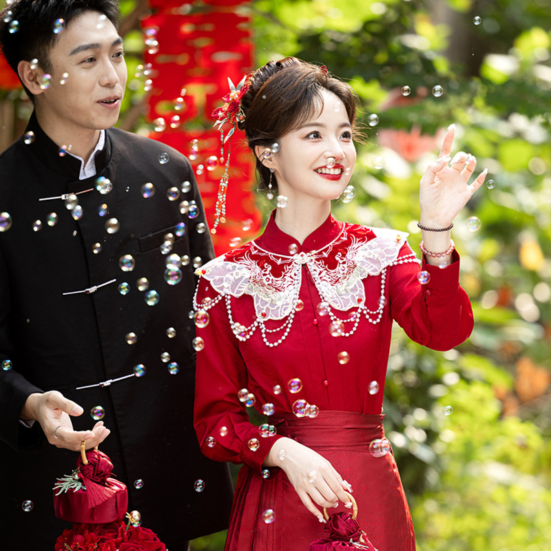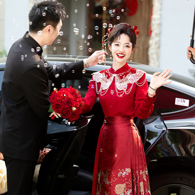 红色马面裙订婚服2025新款小个子新中式新娘结婚套装敬酒服女秋冬