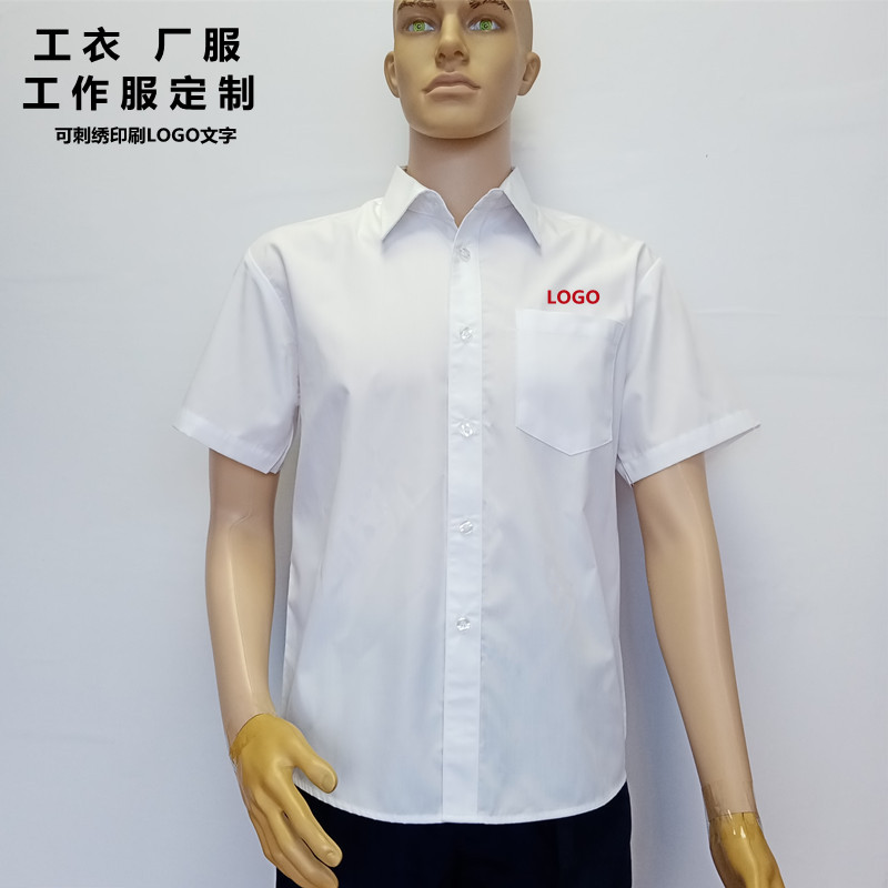 灰色中年男装短袖衬衫薄款免烫方领夏季工衣上班宽松衬衣厂服定制