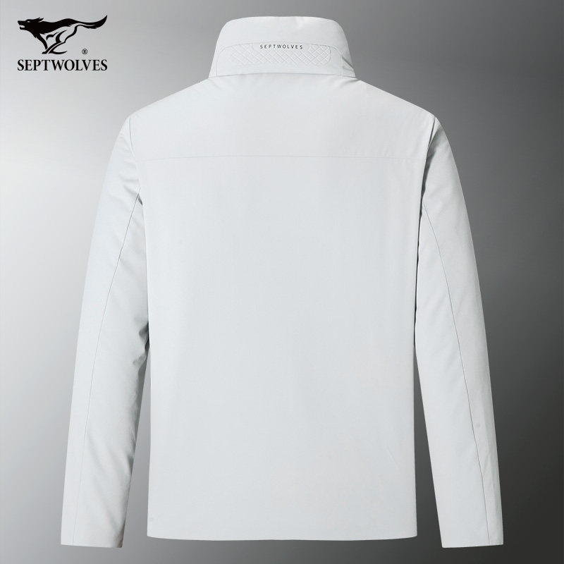 七匹狼羽绒服男狼族生活立领春亚纺提花蓄热短装冬季新款男士外套