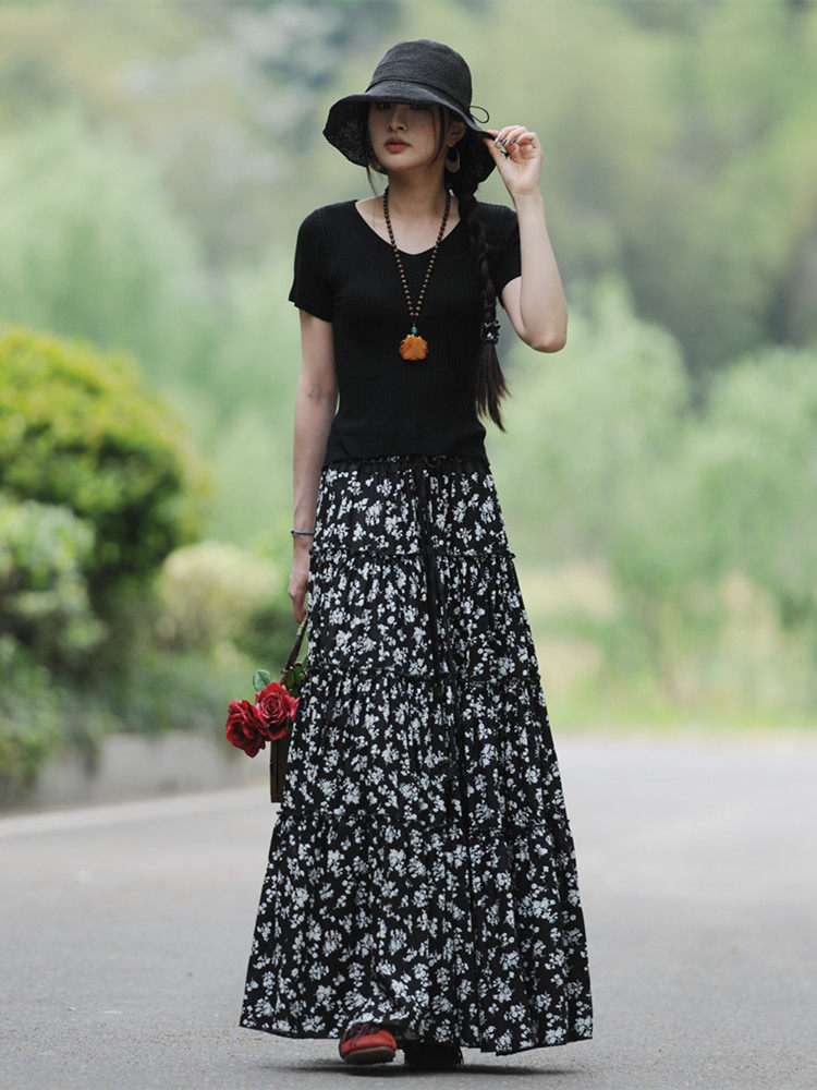 素心长裙大摆波西米亚A型半身裙