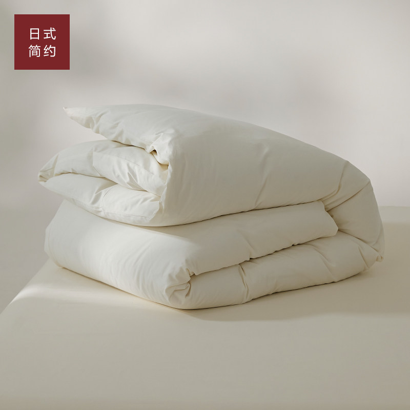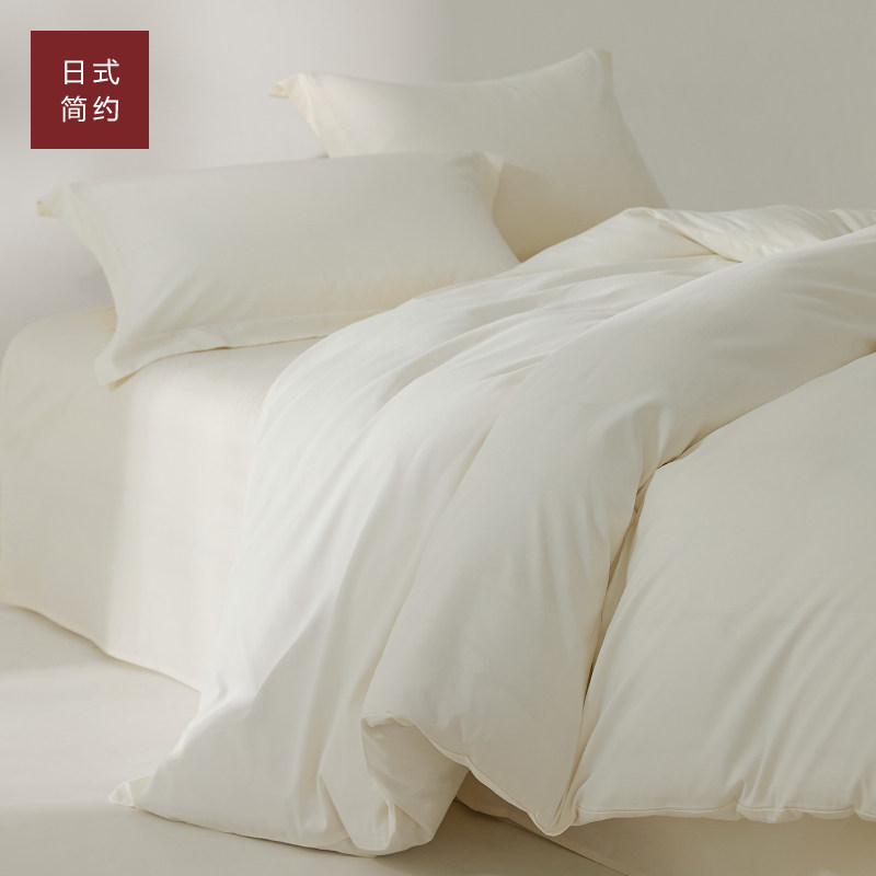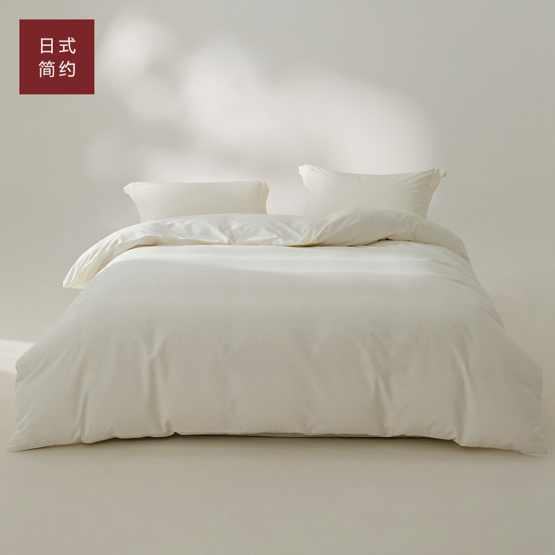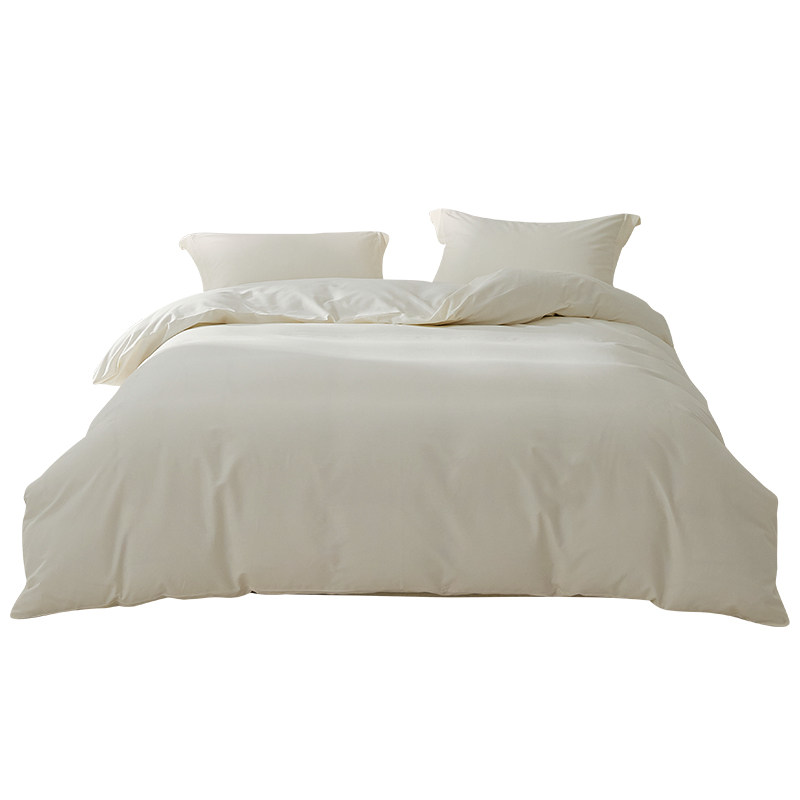 100支新疆长绒棉全棉磨毛四件套100纯棉保暖纯色米白色单人三件套