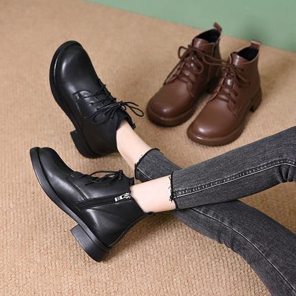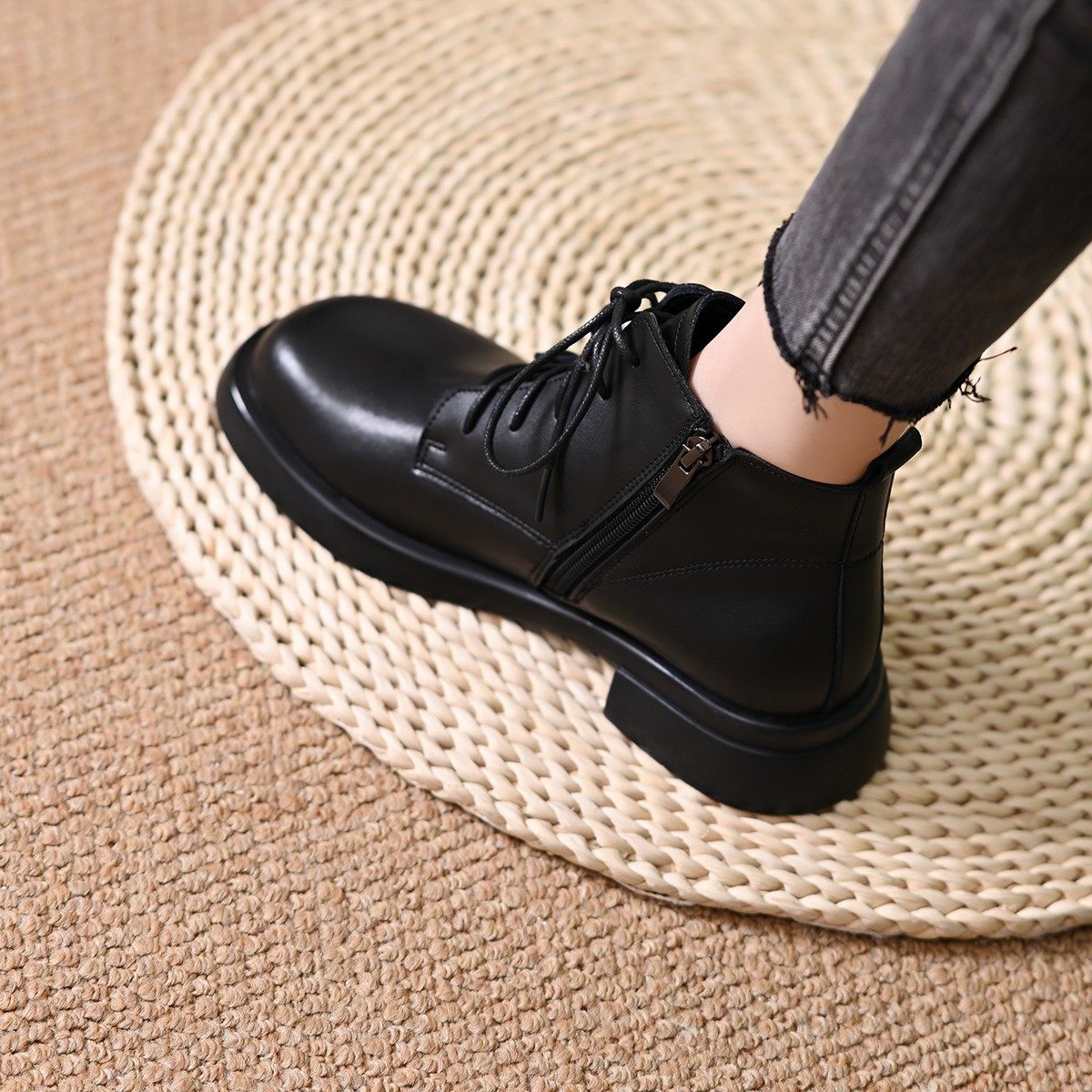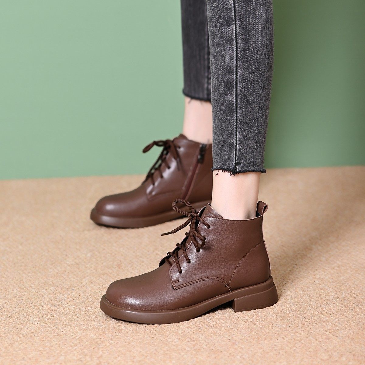 卡迪高马丁靴女2025新款秋冬季小短靴圆头平底软皮英伦风皮鞋单靴