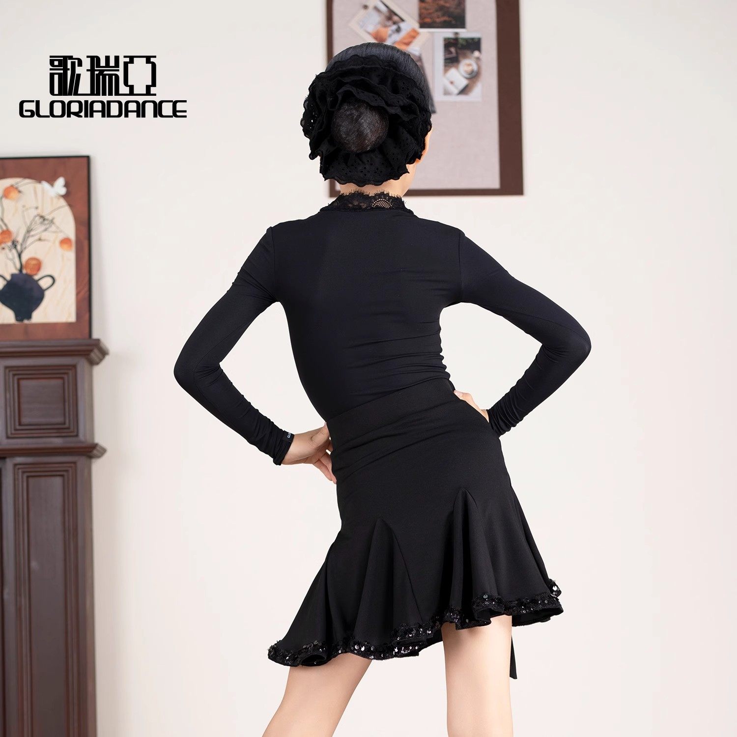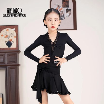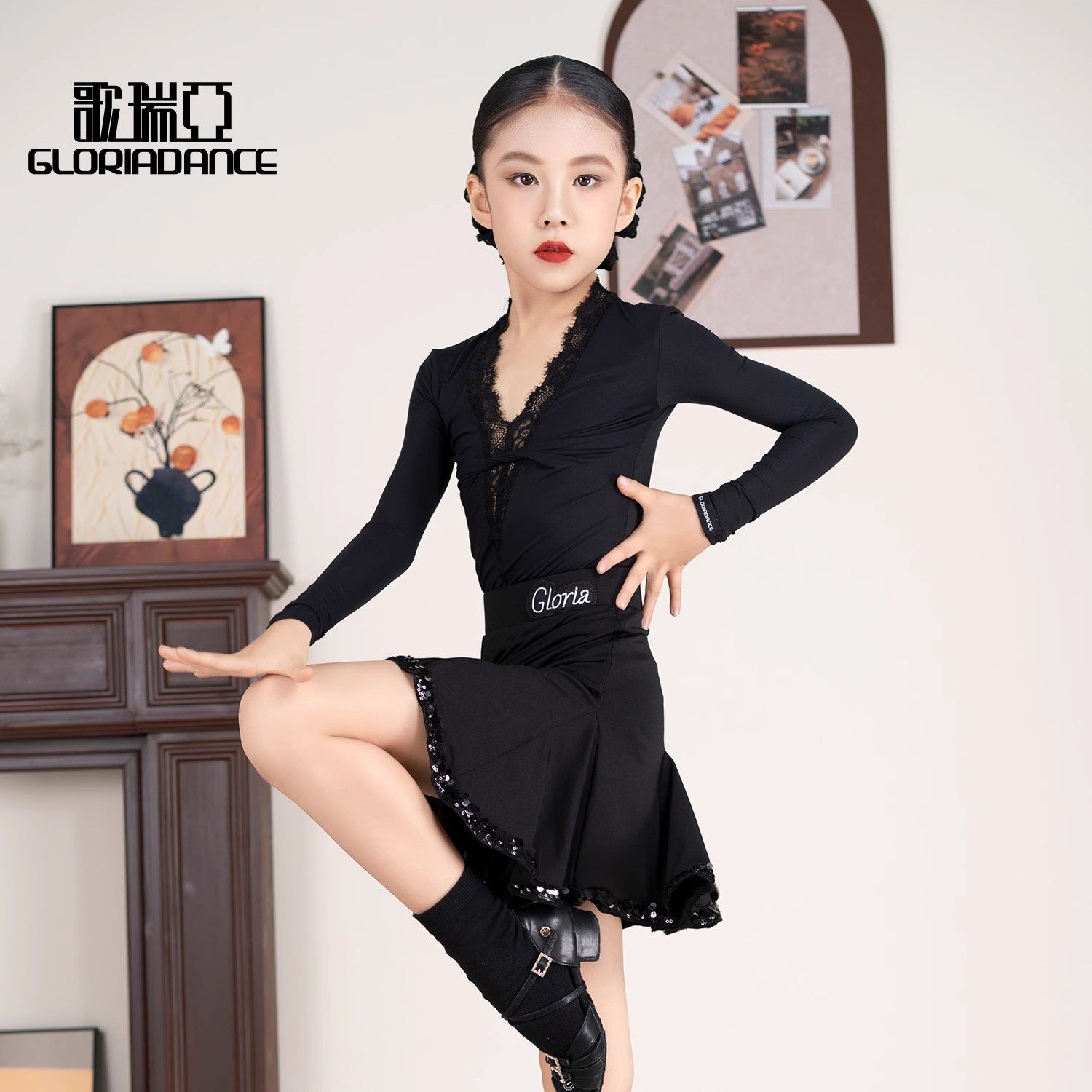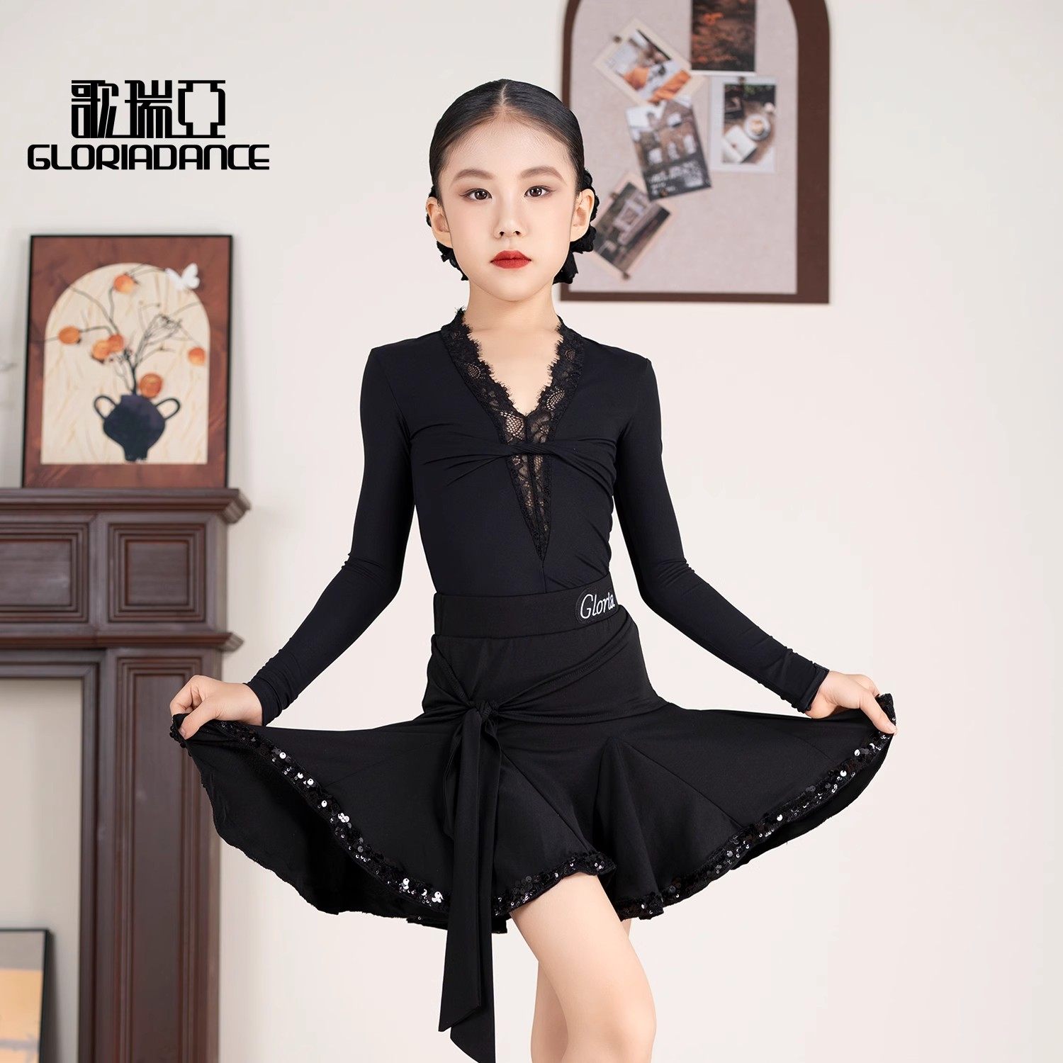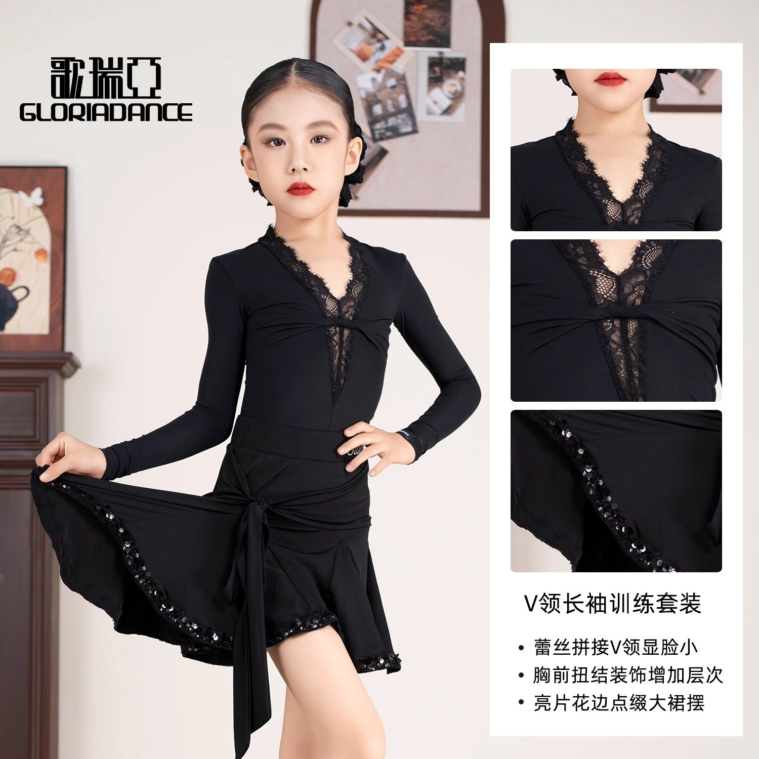 歌瑞亚拉丁舞服套装女儿童日常舞蹈训练功长袖上衣半身裙表演出服