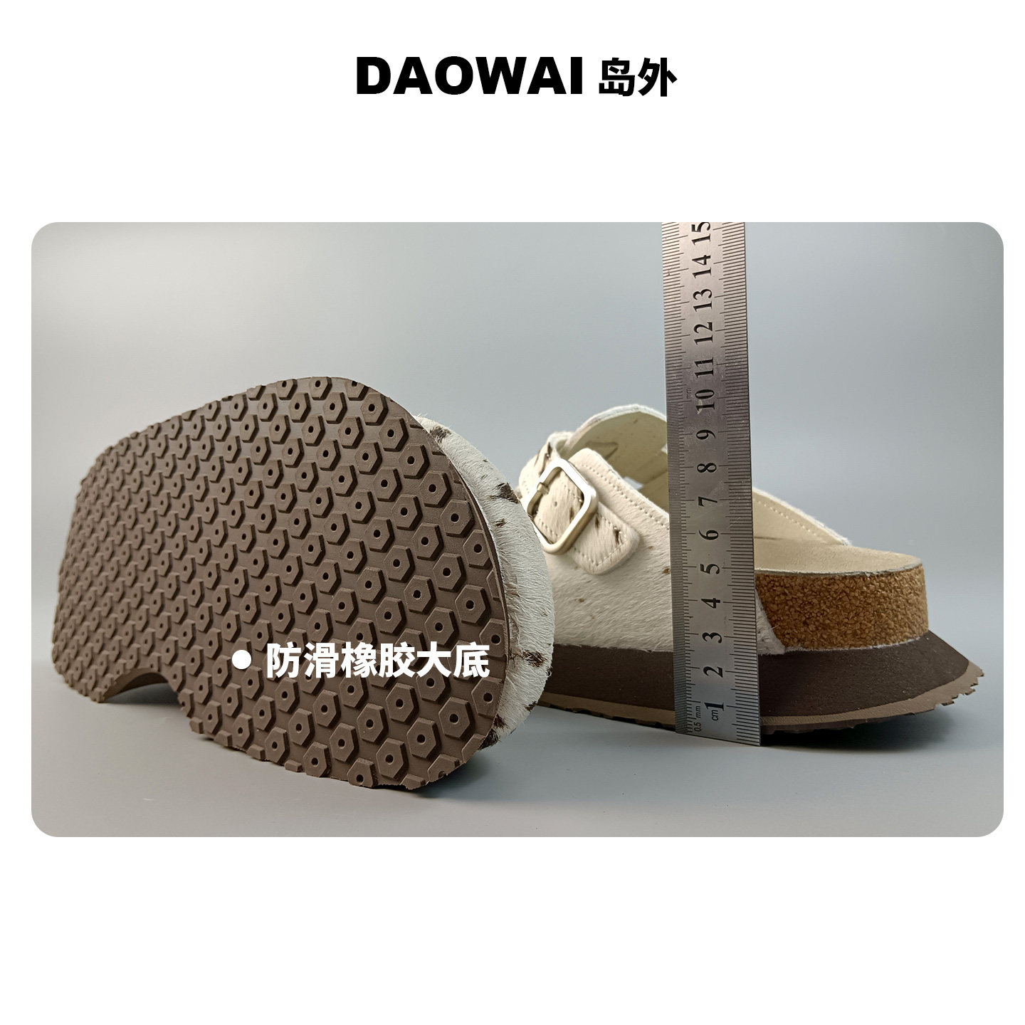 岛外勃肯拖鞋女包头休闲半包半拖套脚个性时尚增高厚底软木拖鞋