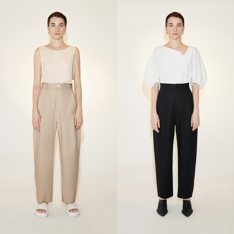 LESS夏季棉质弯刀裤女高腰简约宽松显瘦休闲九分香蕉裤2N5E12260