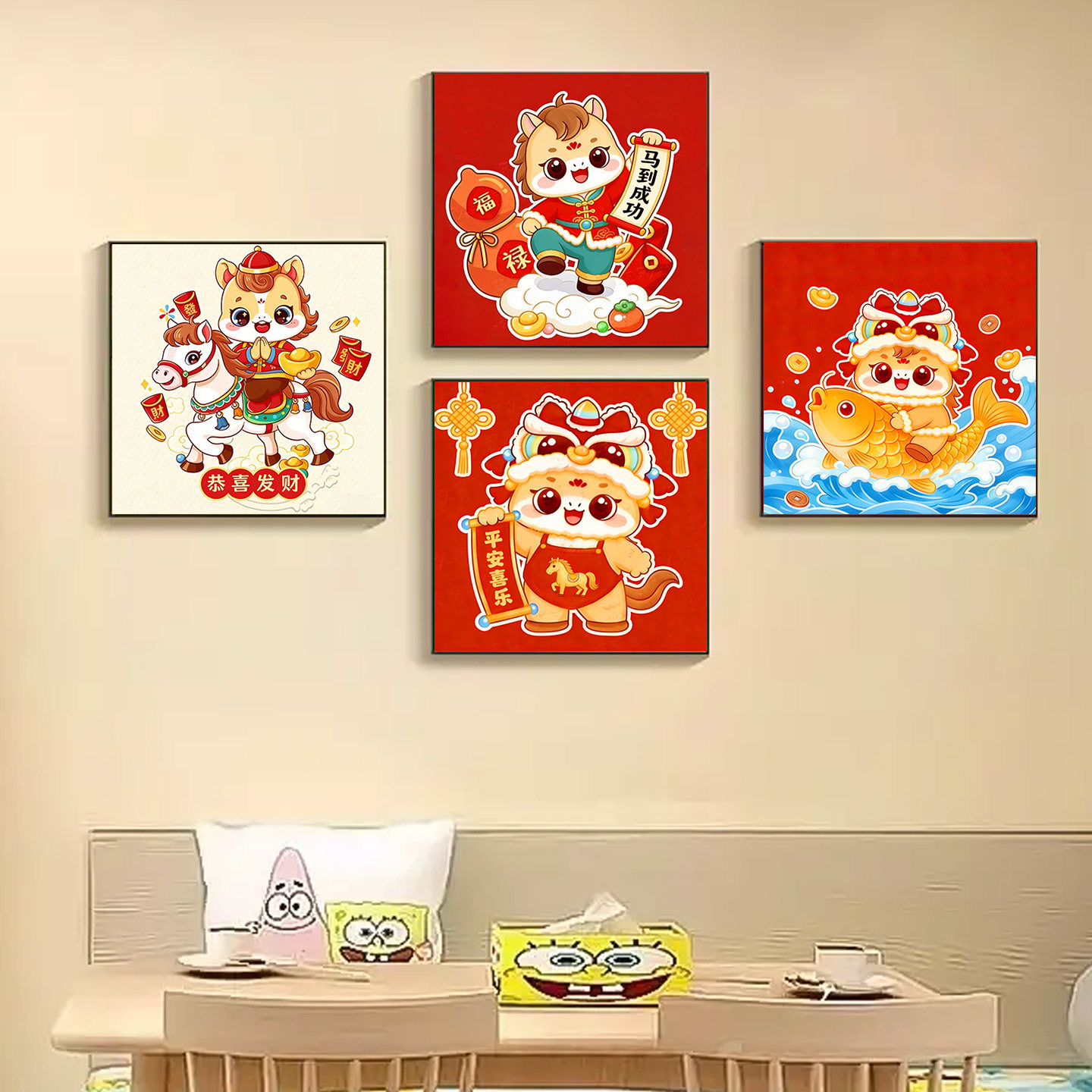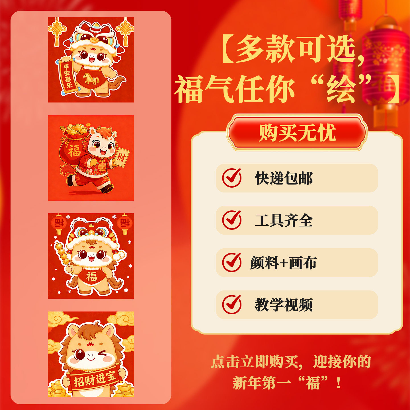 2026新款马年数字油画diy填充丙烯画儿童卡通手工画画简单油彩画
