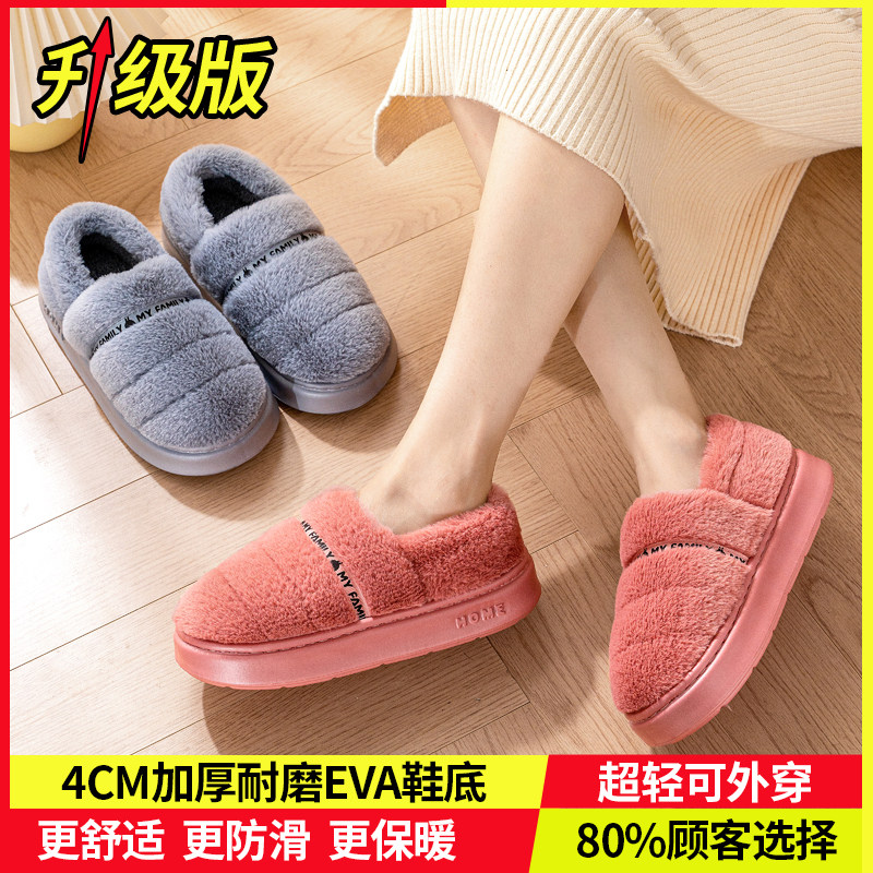 棉拖鞋女款秋冬季室内居家男防滑家用厚底毛毛拖鞋家居包跟月子鞋